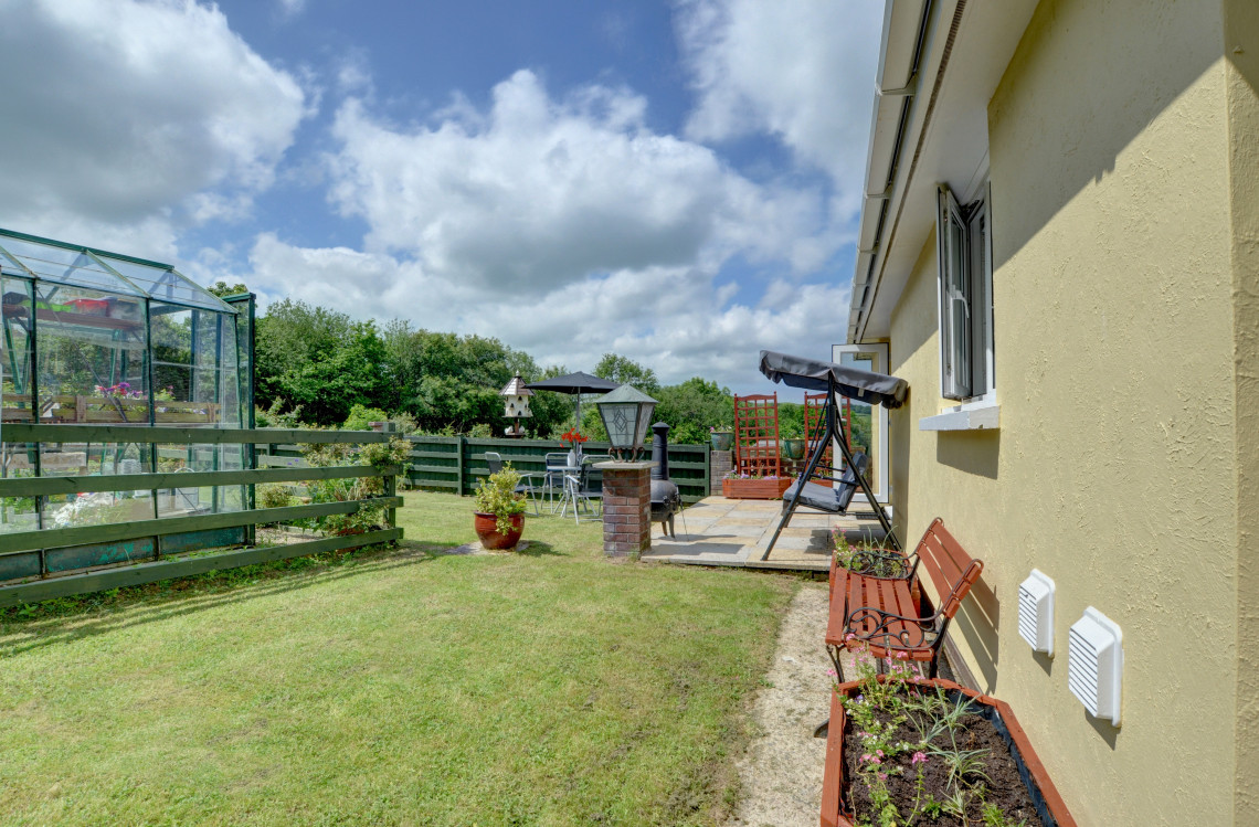 - Outdoors: Enclosed garden with lawn, patio and garden furniture and chiminea