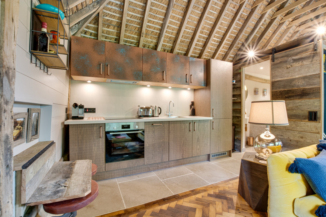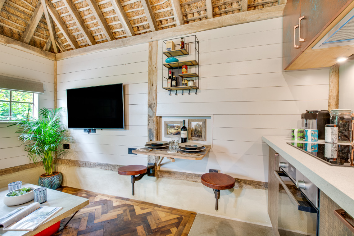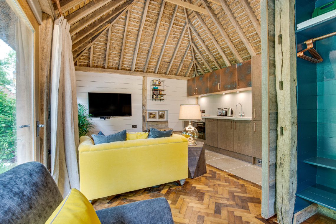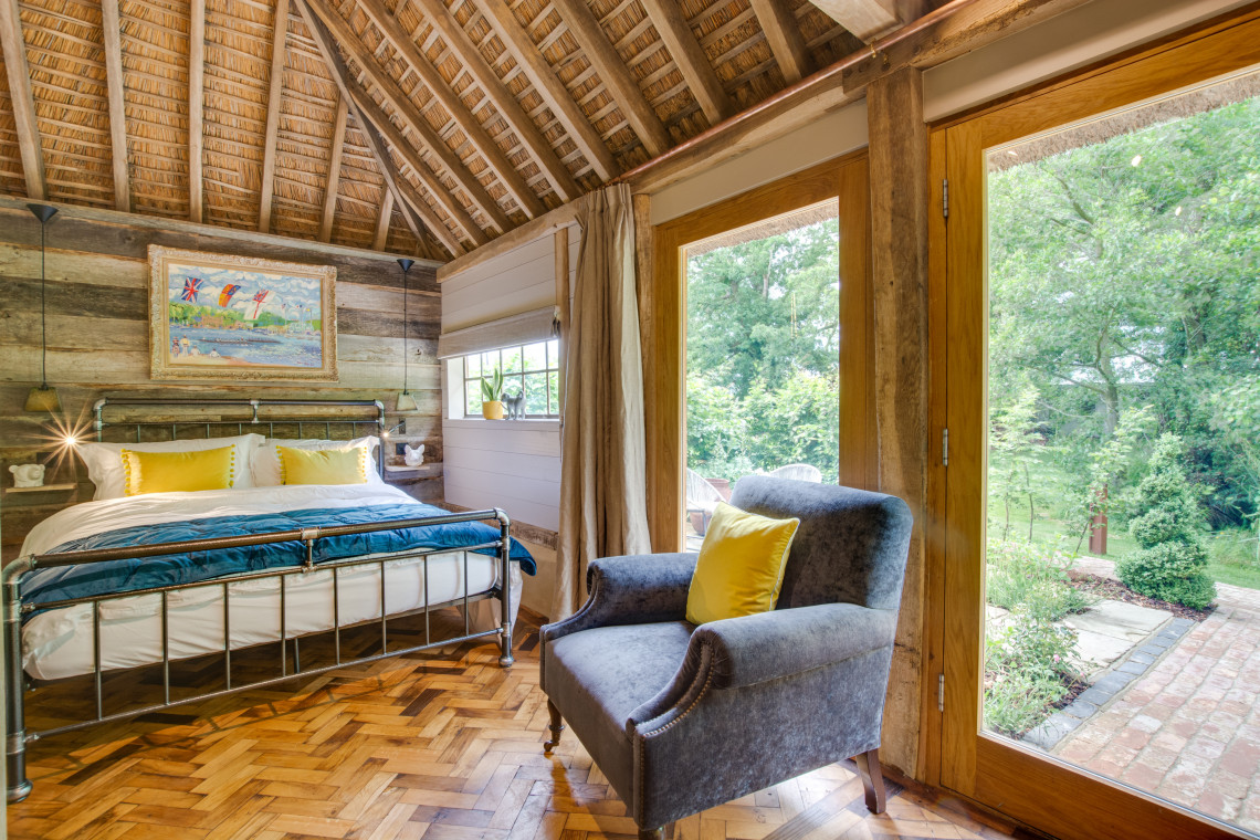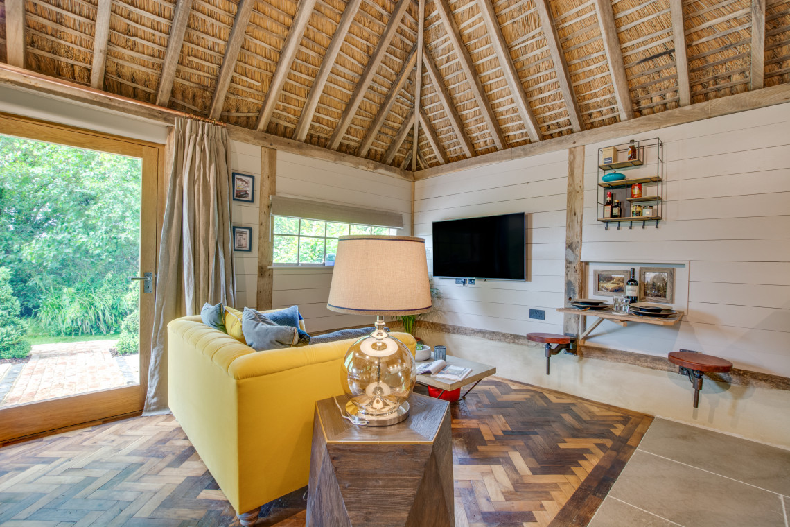 Spinster's Nook is located in the extensive grounds of the owners' medieval house set in the picturesque village of Smarden. The converted thatched cottage offers luxurious open plan living with lots of ingenuity, making the most of the interior space. The parquet flooring has been up-cycled from The Cloth Hall and now hides the underfloor heating. There is a sumptuous king sized bed and a state of the art shower room. The kitchen is fully equipped and there is a clever folding table for dining. There is a courtyard garden with furniture and shared use of the owner's heated pool, games room and gym. The gardens surrounding the cottage are well maintained and extensive. You can walk into the pretty village of Smarden and the area is perfect for exploring all that Kent has to offer.