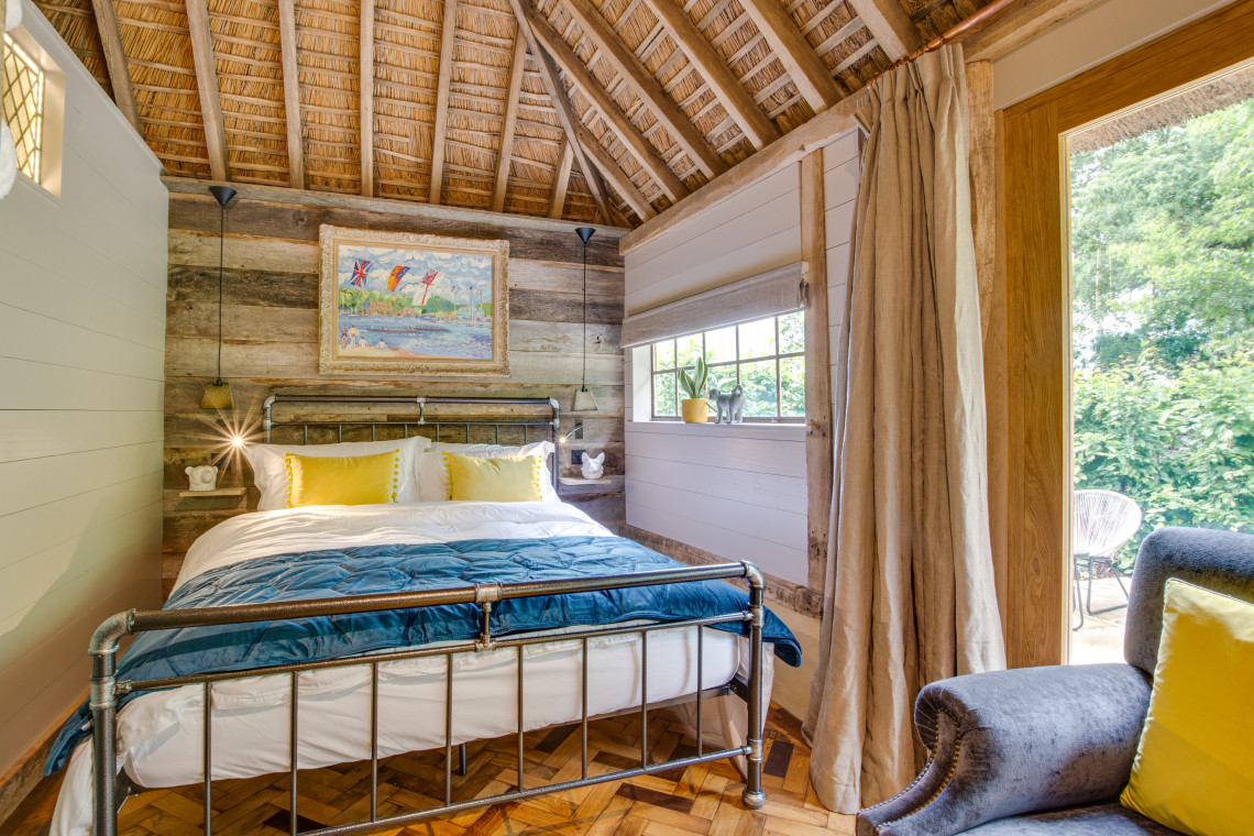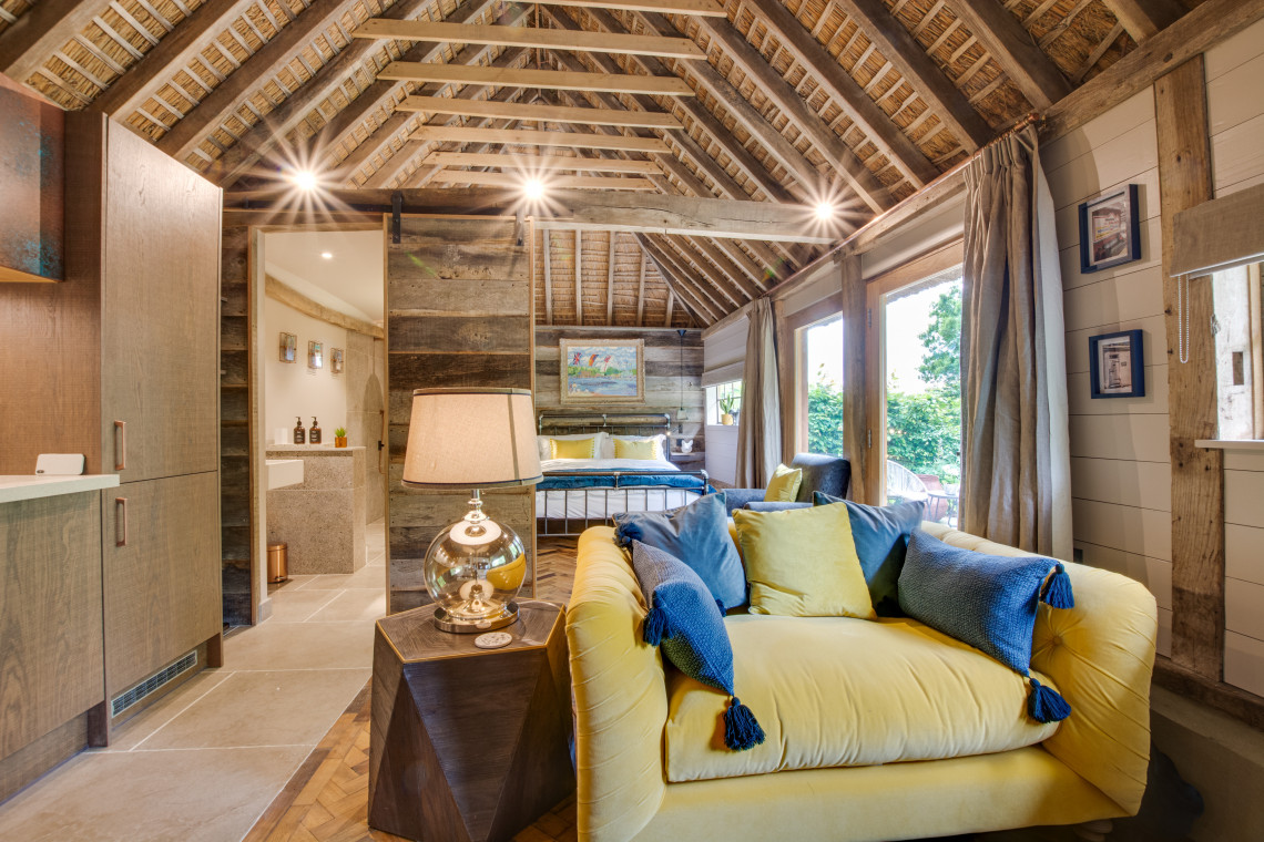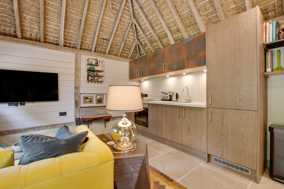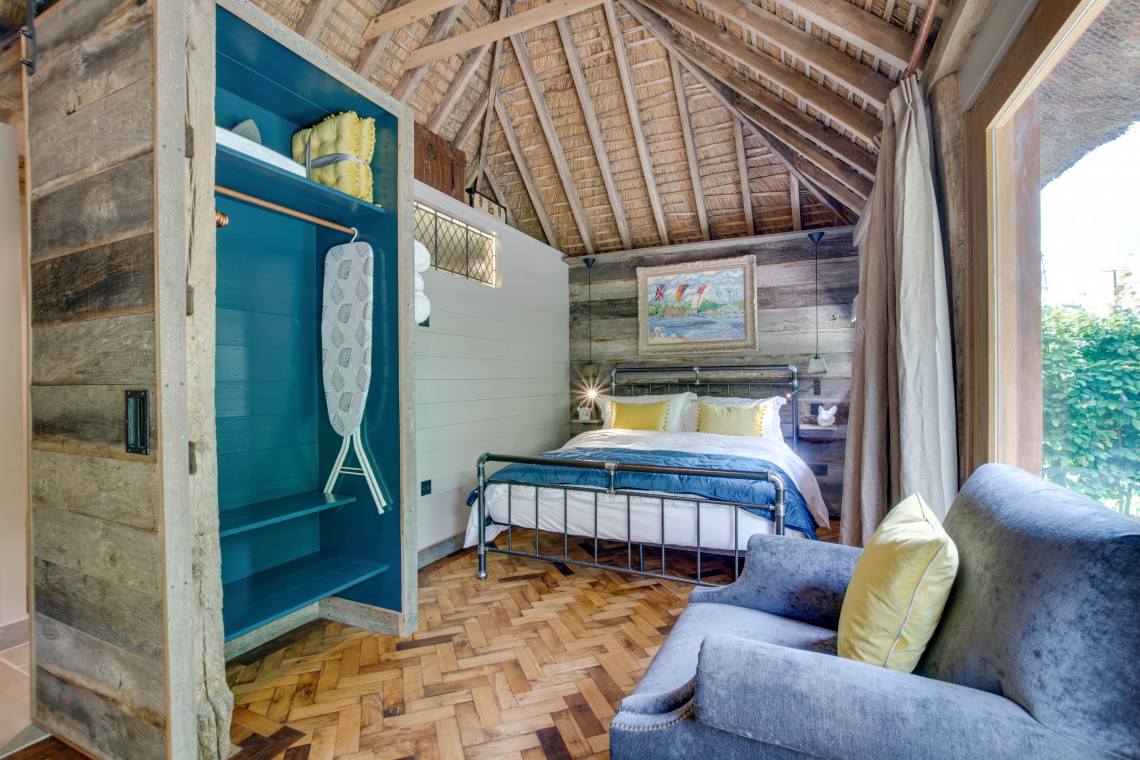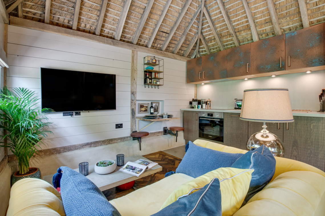 Spinster's Nook is located in the extensive grounds of the owners' medieval house set in the picturesque village of Smarden. The converted thatched cottage offers luxurious open plan living with lots of ingenuity, making the most of the interior space. The parquet flooring has been up-cycled from The Cloth Hall and now hides the underfloor heating. There is a sumptuous king sized bed and a state of the art shower room. The kitchen is fully equipped and there is a clever folding table for dining. There is a courtyard garden with furniture and shared use of the owner's heated pool, games room and gym. The gardens surrounding the cottage are well maintained and extensive. You can walk into the pretty village of Smarden and the area is perfect for exploring all that Kent has to offer.