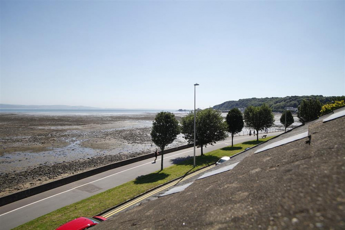 - Bedroom 1: king size bed, fitted mirrored wardrobes, a dressing table and a flatscreen TV on the wall with views out to sea and towards Mumbles Pier.