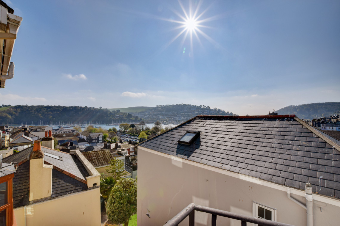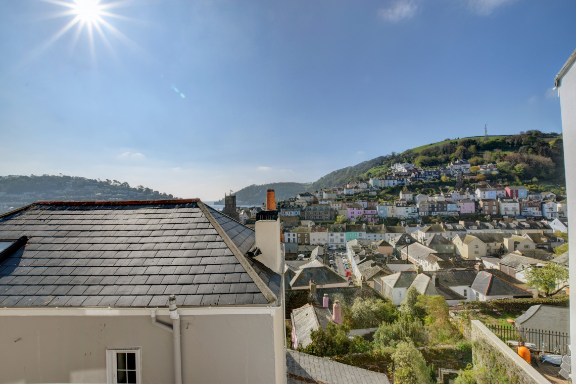 There is outside furniture to enjoy a nice drink overlooking a stunning view of Dartmouth and the river Dart. The front door is accessed by few descending steps, but the property is accessed from the street through 2 flights of stairs with ~20 steps.