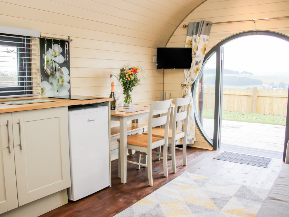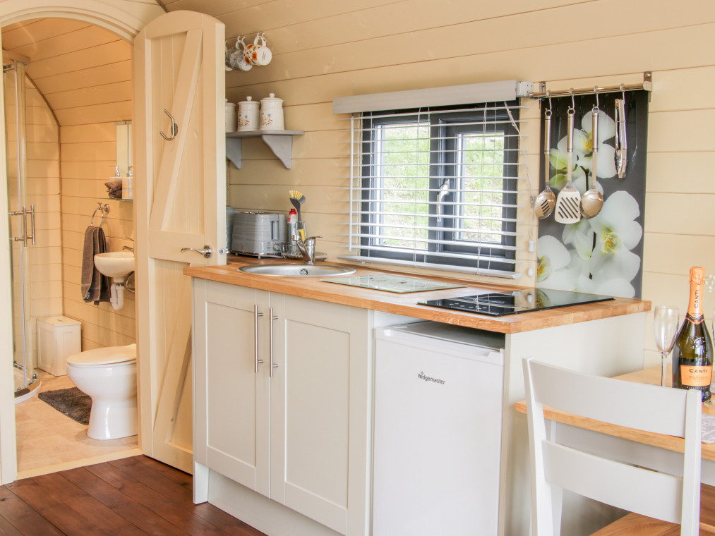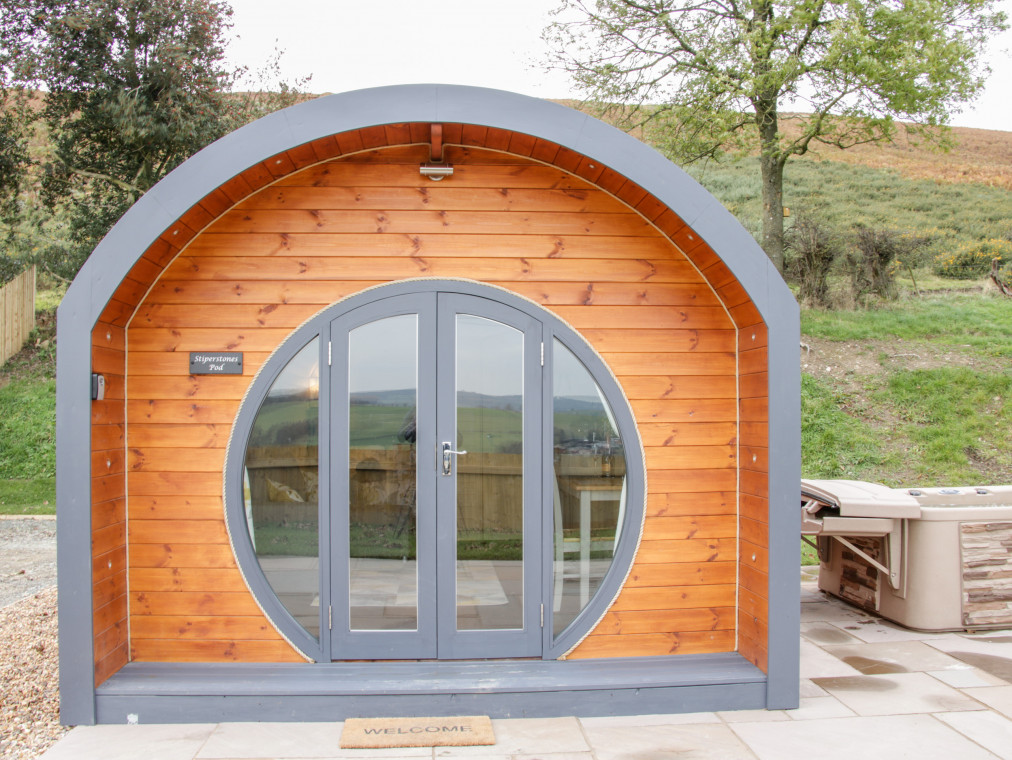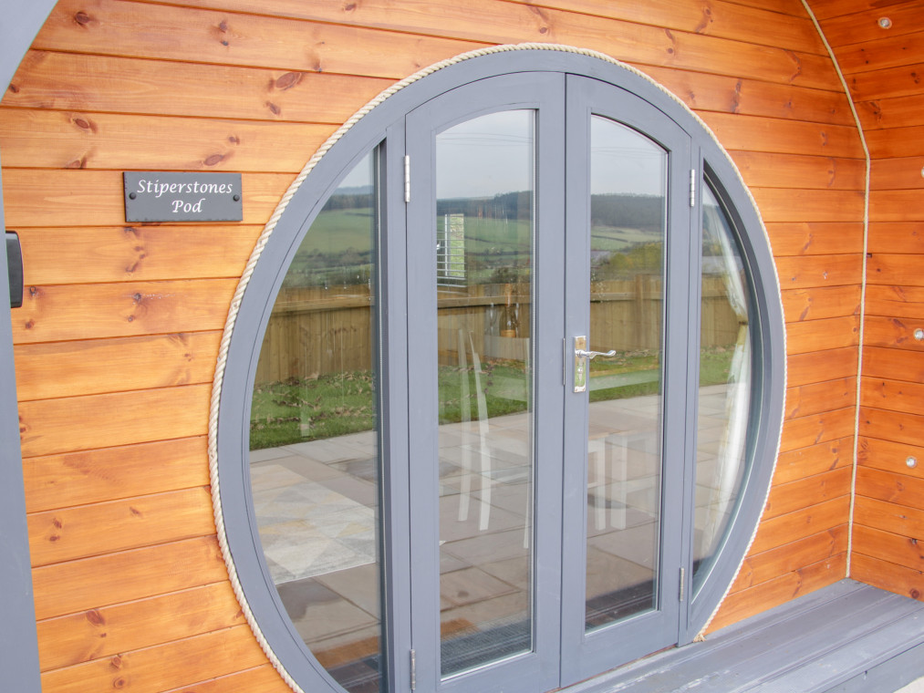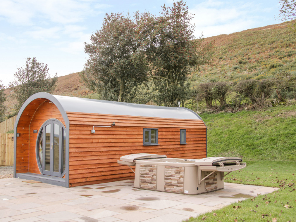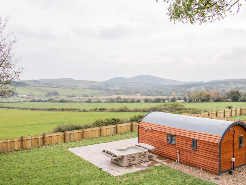 Chirbury 4.7 miles. Set within the hills and valleys of the Shropshire countryside, set apart from the owner’s working farm is Stiperstones Pod, a contemporary holiday home for two, providing a romantically snug spot in the country. Found in White Grit near to the village of Chirbury, you are perfectly situated to enjoy scenic walks from your doorstep and are within easy reach of the Shropshire Hills AONB. Enter your little home through the curved hobbit-style door into the open-plan living space; a Smart TV is mounted on the wall opposite the inviting sofa for your entertainment on a quiet night in, while a small dining area sits to one side for a romantic meal for two. Cook up something special in the small kitchen area which includes an induction hob and a microwave, with a fridge as well. Drift off in the double bed which is tucked into the far corner where you can cosy up with your loved one, with electric central heating to keep you warm in the colder months. Finally completing the pod is the en-suite bathroom containing a corner shower with a basin and a WC, so you have all you need. Best of all, within your own enclosed garden area is a hot tub, so you can star gaze while you relax in the bubbles. Stiperstones Pod is a quirky and cute property perfect for exploring Shropshire. Note: This property can be booked with Refs. 988091, 1061817 together sleeping 6 guests. All-ground-floor studio layout. One double bedroom. Shower room with shower, basin and WC. Open-plan living room with kitchen, dining area and sitting area. Amenities for Rental Electric radiator Electric hob, microwave, fridge Smart TV with DVD player, Netflix and WiFi Fuel and power inc. in rent Bed linen and towels inc. in rent Travel cot and highchair available Sofa bed available Patio with hot tub Off-road parking for two cars Two well-behaved pets welcome Sorry, no smoking Shop 4.6 miles, pub 1.9 miles
