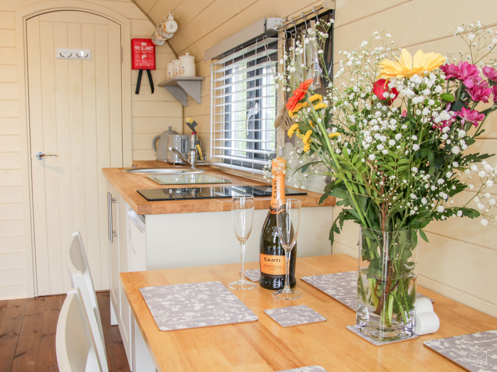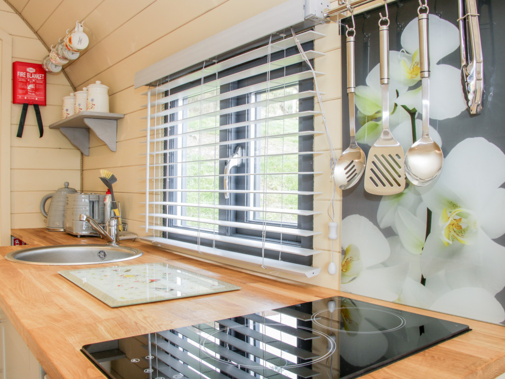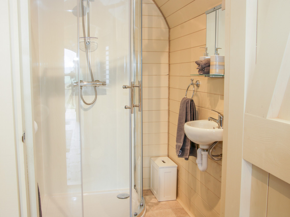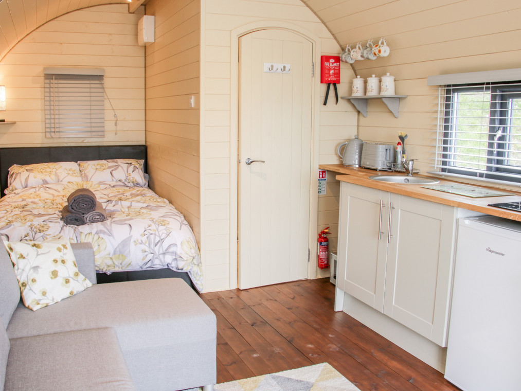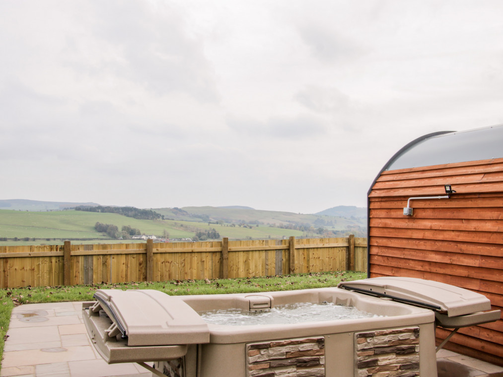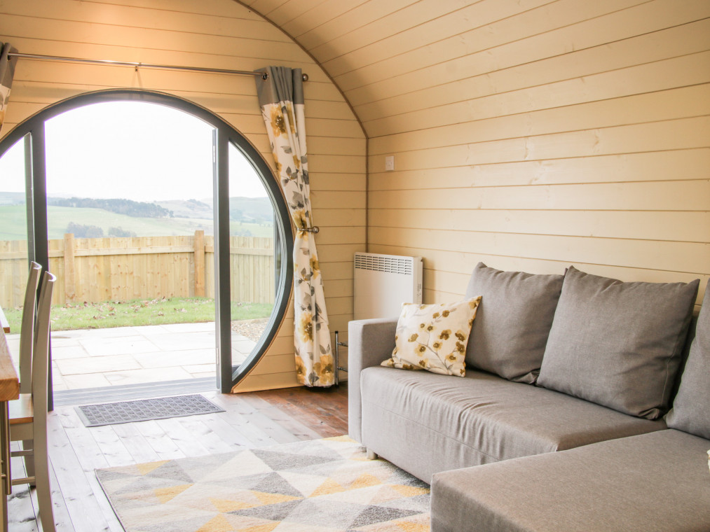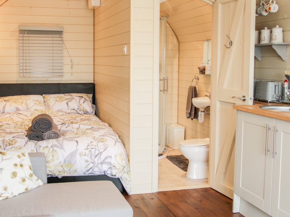 Chirbury 4.7 miles. Set within the hills and valleys of the Shropshire countryside, set apart from the owner’s working farm is Stiperstones Pod, a contemporary holiday home for two, providing a romantically snug spot in the country. Found in White Grit near to the village of Chirbury, you are perfectly situated to enjoy scenic walks from your doorstep and are within easy reach of the Shropshire Hills AONB. Enter your little home through the curved hobbit-style door into the open-plan living space; a Smart TV is mounted on the wall opposite the inviting sofa for your entertainment on a quiet night in, while a small dining area sits to one side for a romantic meal for two. Cook up something special in the small kitchen area which includes an induction hob and a microwave, with a fridge as well. Drift off in the double bed which is tucked into the far corner where you can cosy up with your loved one, with electric central heating to keep you warm in the colder months. Finally completing the pod is the en-suite bathroom containing a corner shower with a basin and a WC, so you have all you need. Best of all, within your own enclosed garden area is a hot tub, so you can star gaze while you relax in the bubbles. Stiperstones Pod is a quirky and cute property perfect for exploring Shropshire. Note: This property can be booked with Refs. 988091, 1061817 together sleeping 6 guests. All-ground-floor studio layout. One double bedroom. Shower room with shower, basin and WC. Open-plan living room with kitchen, dining area and sitting area. Amenities for Rental Electric radiator Electric hob, microwave, fridge Smart TV with DVD player, Netflix and WiFi Fuel and power inc. in rent Bed linen and towels inc. in rent Travel cot and highchair available Sofa bed available Patio with hot tub Off-road parking for two cars Two well-behaved pets welcome Sorry, no smoking Shop 4.6 miles, pub 1.9 miles