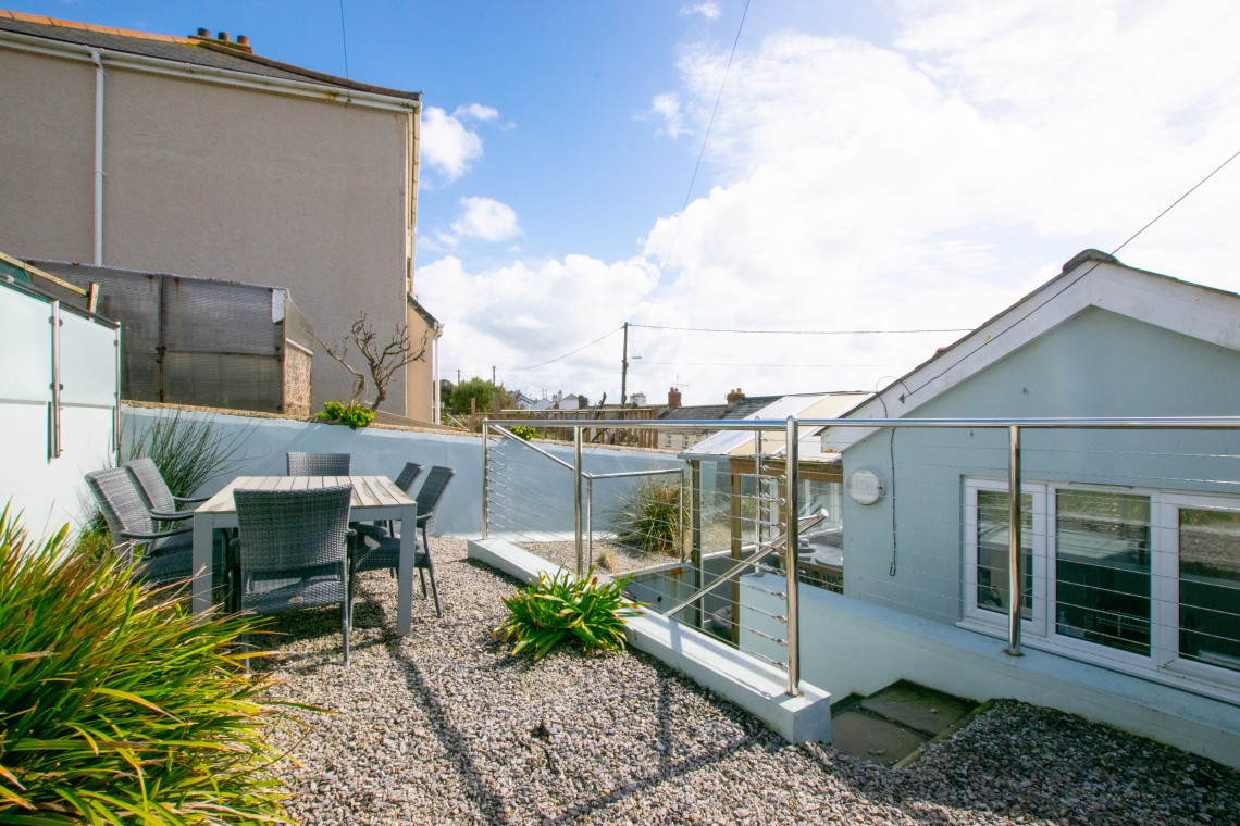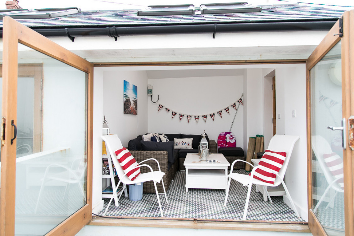 - Outside: Rear garden with patio, outside furniture and built-in BBQ. Separate sunroom above the beach with patio doors, a balcony and indoor and outdoor furniture.