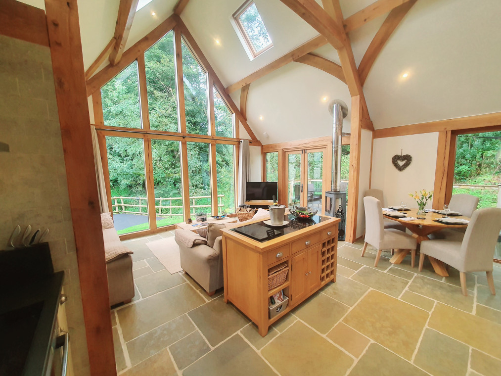 Read MoreStunning eco lodge in the heart of The Brecon Beacons, sleeping four guests in two bedrooms. Ground Floor: Open plan living space. Living area: Smart TV, Freesat, Bluetooth Speaker, Bluray Player, Xbox One, Woodburner Dining area. Kitchen area: Electric Oven, Induction Hob, Microwave, Fridge, Dishwasher, Coffee Machine Utility Room: Freezer, Washing Machine Bedroom 1: Zip And Link Super Kingsize (6ft) Bed Bathroom: Bath, Walk-In Shower, Heated Towel Rail, Toilet First Floor: Bedroom 2: Kingsize (5ft) Bed, Smart TV Electric underfloor heating, electricity, bed linen, towels, superfast Wi-Fi and logs for wood burner included. Travel cot and highchair available on request. Welcome pack and doggy extras. Rear garden with patio, decked area area, BBQ and garden furniture. Hot tub for 4 (private). Bike store. Electric car charging point. Private parking for 2 cars. No smoking. Please note: The property borders a stream. Swn Y Nant is a stunning lodge in the heart of the Brecon Beacons. This eco-friendly property is perfect for those wanting to explore the area or to simply have a romantic break away from the hustle and bustle of daily life. Nestled next to a stream and with a ramp to the entrance, this fabulous lodge comprises a ground floor bedroom with a super kingsize zip and link bed and a ground floor bathroom with a walk-in shower, a double-ended two-person bath and a heated towel rail. The open plan living, dining and kitchen space has floor-to-ceiling windows making it light and airy and has a Smart TV, super fast Wi-Fi up 150 mbps download and patio doors leading to the decked area with a private hot tub. There is also a small utility area. To the first floor is a kingsize bedroom with Smart TV. There is underfloor heating throughout the property with zoned thermostatic controls. Outside, you will find hot and cold taps, perfect for washing your four-legged friends off after a walk in the hills. This eco-friendly lodge has eco cleaning products which are supplied along with a welcome basket of local produce, as well as a welcome basket for your dog containing treats and eco waste bags, also supplied is a bed, a blanket and a towel for your four-legged friend. A medium sized dog cage is available upon request. There are plenty of walks to be had from the property; it is 6 miles to the historic town of Brecon with its array of coffee shops, small local independent shops, and art galleries. There is something here for everyone, and for those looking for more adventures then why not climb the high peaks of Pen Y Fan and take in the breathtaking views of the rolling countryside? bath robes and slippers,