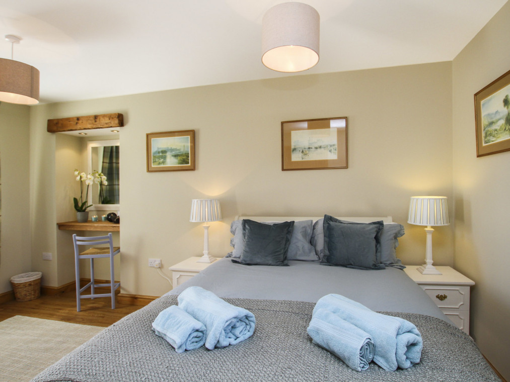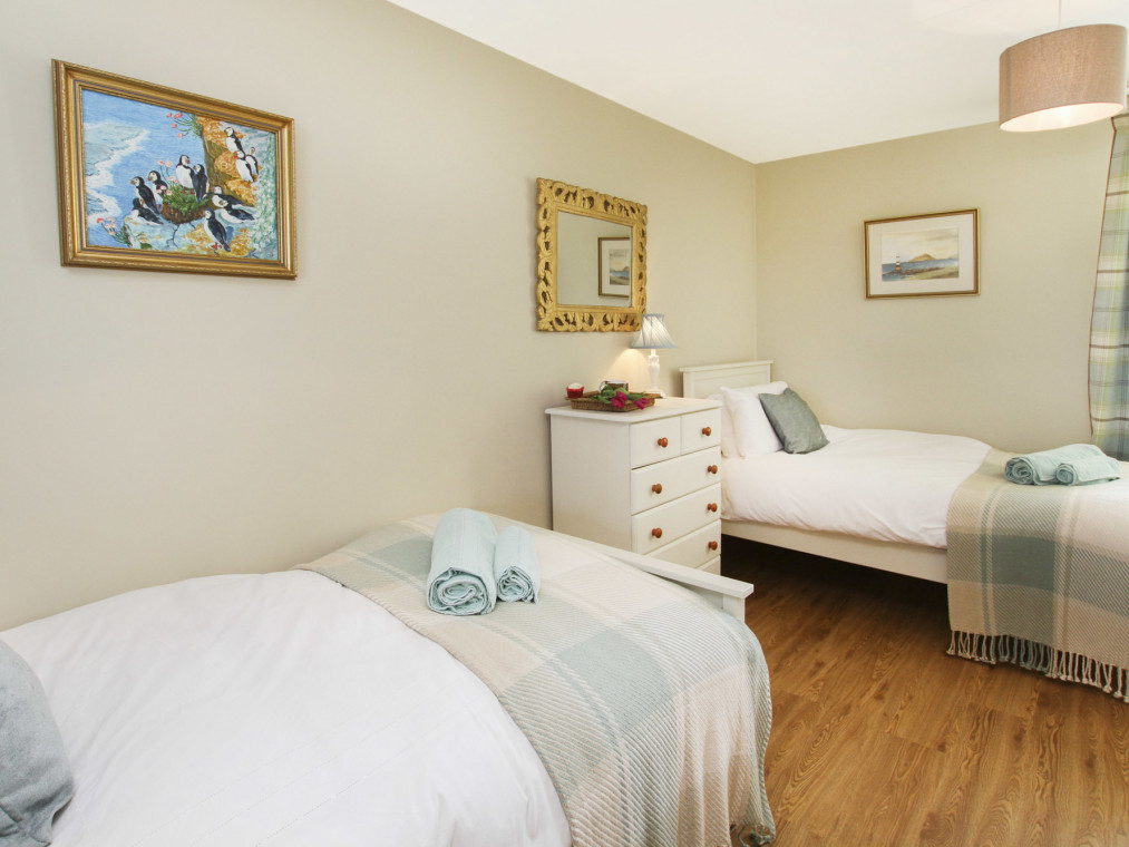 This renovated stone barn at Wern Farm has been completed to a high standard, offering a fantastic space to get away from everyday life. This “upside down” holiday cottage offers comfortable bedrooms on the ground floor and a bright and airy open plan living area upstairs, making the most of the views over the Anglesey countryside. The fantastic open plan living area on the first floor is an ideal spot to all get together and relax after a busy day exploring. The spacious kitchen has everything that you could need with an electric oven and hob, fridge, freezer and dishwasher. There is a dining and seating area with log burning stove and flat screen TV. Both bedrooms are located on the ground floor. There is one double ensuite with a bath with shower overhead, loo and hand basin and one twin ensuite with a shower, loo and hand basin. There is a balcony with lovely views out over the Anglesey countryside. Teal Cottage is located in a fantastic spot, on the south east corner of Anglesey. There is so much to do on your doorstep. The popular seaside town of Menai Bridge is six miles in one direction and Red Wharf Bay the same in the other direction. You are close to shops, pubs and restaurants, as well as lovely sandy beaches. However, if you just wish to put your feet up and relax you couldn’t ask more of this serene location. Teal is one of three cottages, each with its own exterior space. The cottages can be booked individually but also offer an ideal solution for friends and family wanting to holiday together while staying in separate accommodation. Partridge Cottage also sleeps 4 and Mulberry Cottage sleeps 6. Please see individual cottage pages for full descriptions and facilities. Two bedrooms: 1 x double ensuite, 1 x twin ensuite. Double ensuite with bath, shower over, WC and basin. Twin ensuite has a shower, WC and basin. Open plan kitchen, dining and seating area with log burning stove. Amenities for Rental Central heating with log burning stove Electric oven and hob, fridge freezer, dishwasher TV, WiFi Travel cot (no linen), high chair. bed linen and towels provided Tennis court Ample off road parking Two dogs welcome Balcony with garden furniture Pubs, shops and restaurants 2.5 miles.