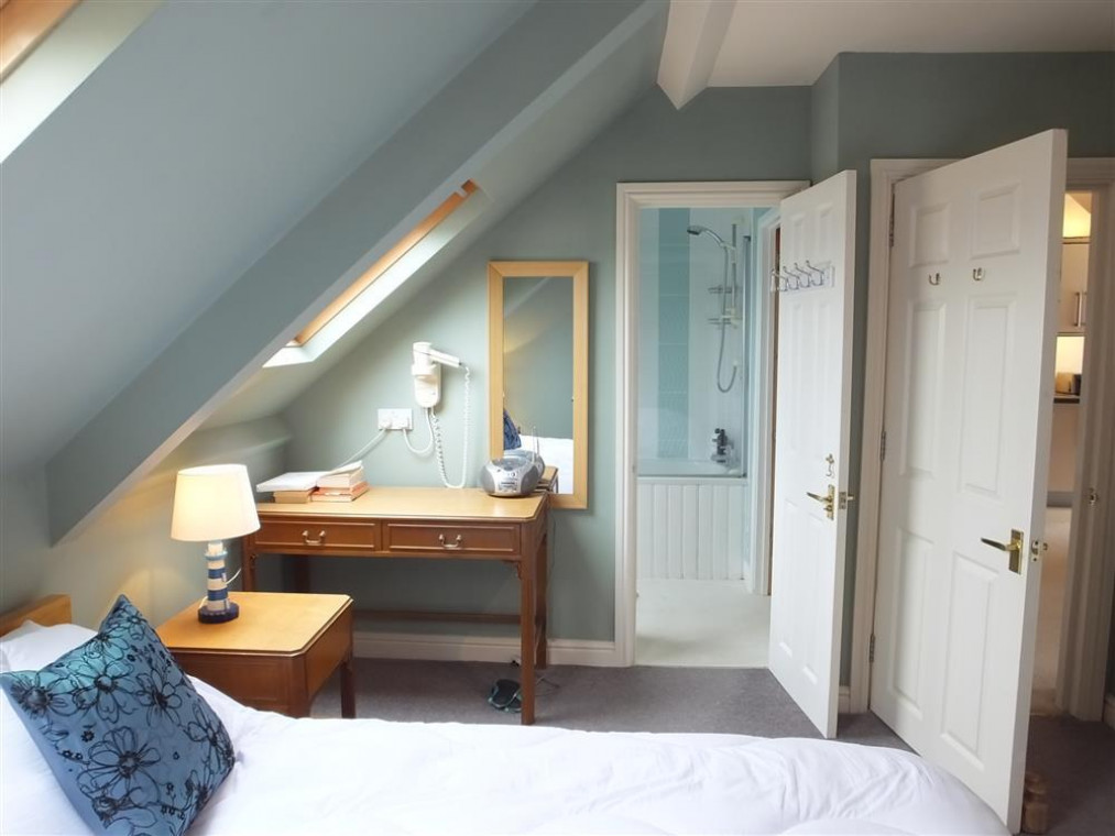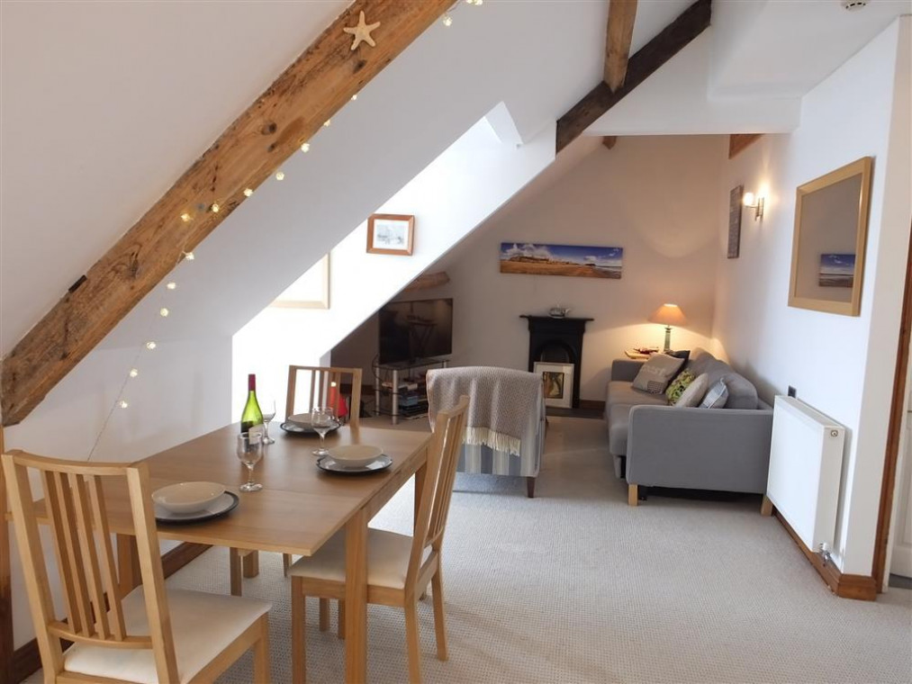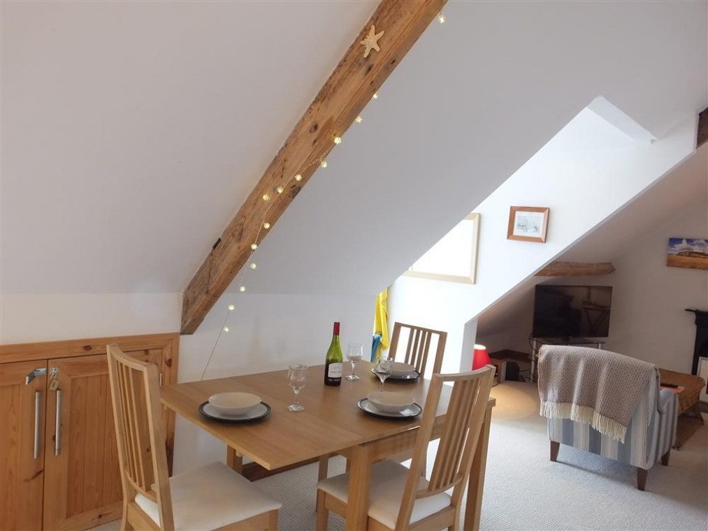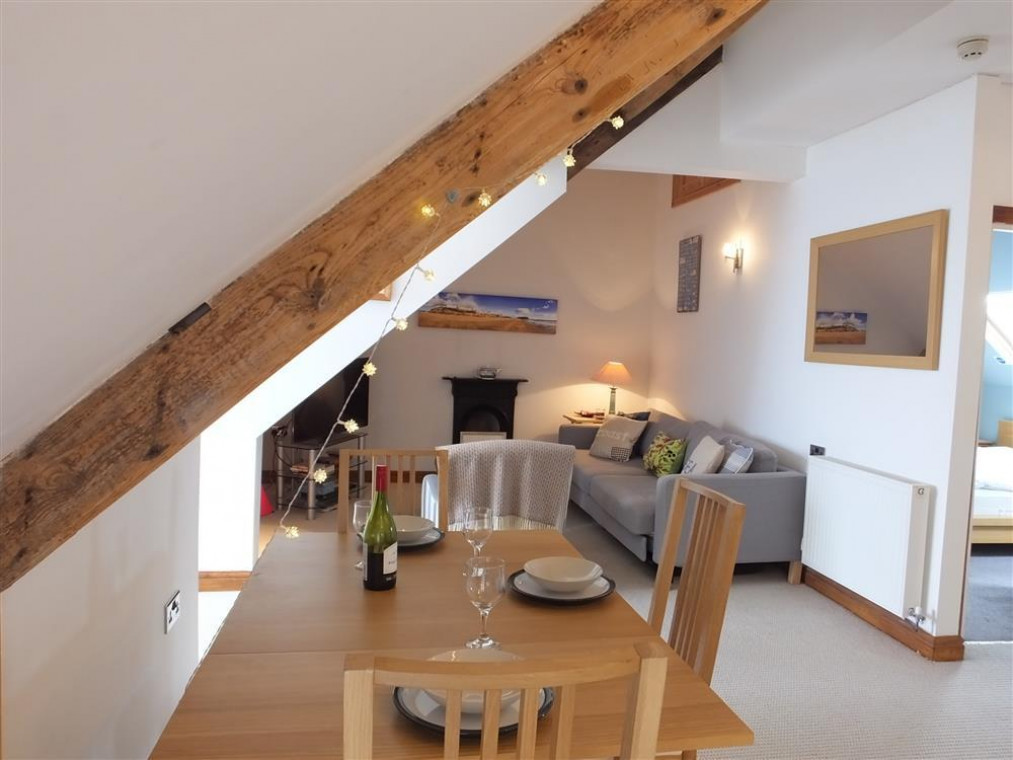 Situated in a prime position on The Esplanade with views over the bay and coastline beyond, St Agathas is an impressive building that has been converted into apartments. Tenby Towers is on the third floor, a loft apartment with sloping ceilings and lovely sea views. It has been furnished and equipped to offer good quality holiday accommodation. A short stroll through Imperial Arch part of the 13th century town walls leads on to the Paragon and through a narrow cobbled lane into St Julian Street and Tudor Square a bustling area of the town with a variety of shops, wine bars, pubs and restaurants. During July and August the area within the town walls is traffic free and visitors can enjoy 'al fresco' dining at one of the many cafes and restaurants. Take a boat ride over to Caldey Island a pretty island run by an Order of Cistercian monks who make their own perfume and chocolate which is sold in the island shop. Apart from the four beautiful sandy beaches to choose from there are plenty of local attractions to enjoy and all are within a short driving distance.