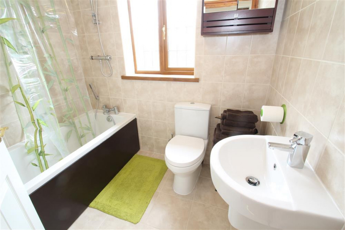- Bathroom: bath with shower over, WC and wash hand basin.