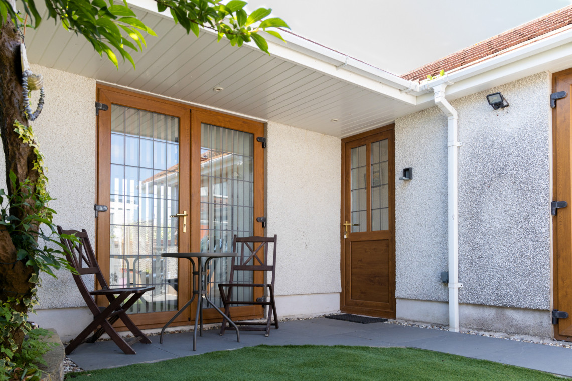 - Outside: small courtyard with Astroturf and patio furniture for 2.