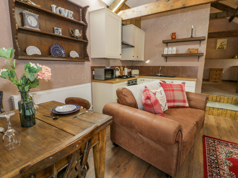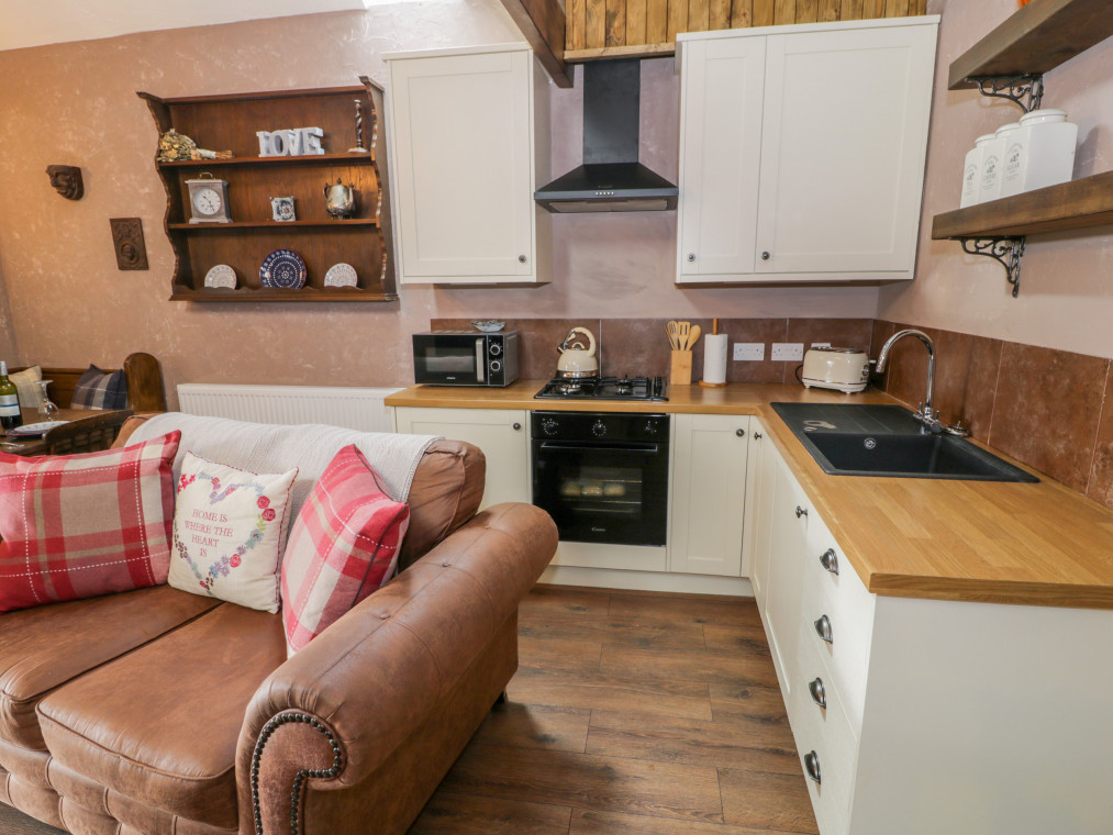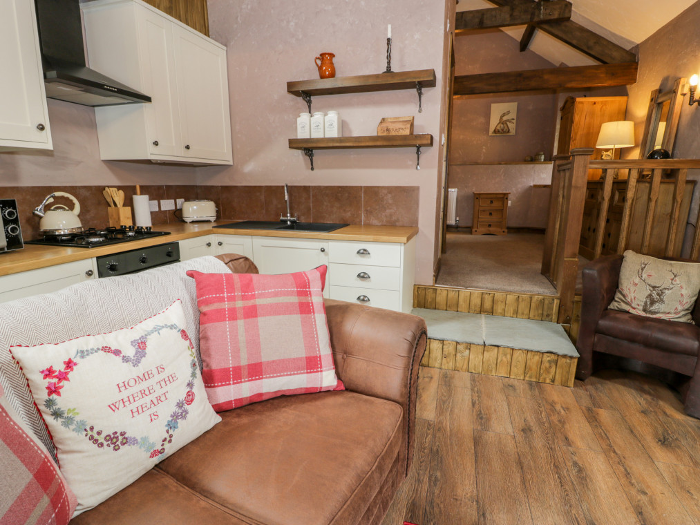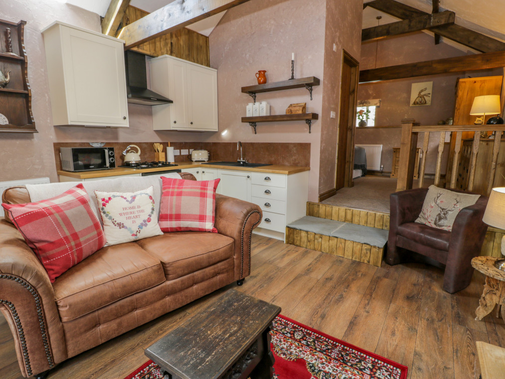 This lovingly converted barn is engulfed by panoramic views of unspoilt countryside, and wonderful sea views stretching over towards the mountains of Snowdonia. It offers a wonderful addition to the farmhouse at Cae'r Fadog Isaf, the perfect, romantic bolthole for a couple seeking some quality time together. Cwn Pennant is one of the most stunning valleys in Wales, with access to all the delights of Porthmadog, Cricceith and Portmeirion nearby. It oozes character from the A-framed ceiling and exposed beams, with a warm and cosy atmosphere. The interior offers a well-appointed, open-plan living room with a woodburning stove adding extra warmth to a wintry evening. There is also a double bedroom up a couple of steps, served by a modern bathroom and outside you have the benefit of a wood-fired hot tub within your own private garden. Take some quiet time with your favourite book on a balmy afternoon, or gather with friends for alfresco dining on a warm summer's evening. Soak in the wood-fired hot tub after a day of adventure and look up at the star-filled sky, taking in the peaceful atmosphere surrounding you. If you fancy heading out for the evening, the nearest pub, the Goat Inn, offers delicious food and drink, down in the village of Garndolbenmaen. nearby, Porthmadog boasts quaint little beach shops and places to eat, as well as the Ffestiniog Railway. Discover the castle at Criccieth and some superb sandy beaches, or explore the Italianate village of Portmeirion. You also have the Snowdonia National Park on the doorstep, with walks, cycling opportunities and many outdoor activities available. Enjoy a memorable holiday in a splendid location. Note: Property can be booked with Ref. 975393, together they can sleep eight guests. All ground floor. One bedroom: 1 x double. Bathroom with bath, shower over, basin and WC. Open-plan living room with kitchen, dining area and sitting area with woodburning stove. Amenities for Rental Gas central heating with woodburning stove Gas hob with electric oven, microwave, fridge, TV, WiFi Fuel, power and starter pack for fire/stove inc. in rent Bed linen and towels inc. in rent Ample off-road parking Private garden area with furniture and wood fired hot tub with all wood provided Two well-behaved dogs welcome Sorry, no smoking Shop 6 miles, pub 4.9 miles Note: There is limited WiFi due to the location of the property Note: Hot Tub dependant on weather conditions.