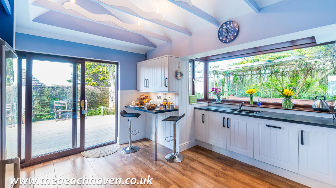 Read MoreDog-Friendly (max 3 dogs @£25) The UK's Best Seaside Town (official!) 10-minutes walk to dog-friendly beaches, coast path and town centre. Secure back garden with sun-deck. 4 bedrooms: 2 king-sized, a twin and a bunk. Priced for 2 or 4 people outside peak weeks! (Please enquire) Off-street parking for 2 cars. Superfast fibre broadband. 55" 4K TV and sound system with Netflix and Spotify Premium Accounts. Full details and online booking on our website: www.thebeachhaven.co.uk