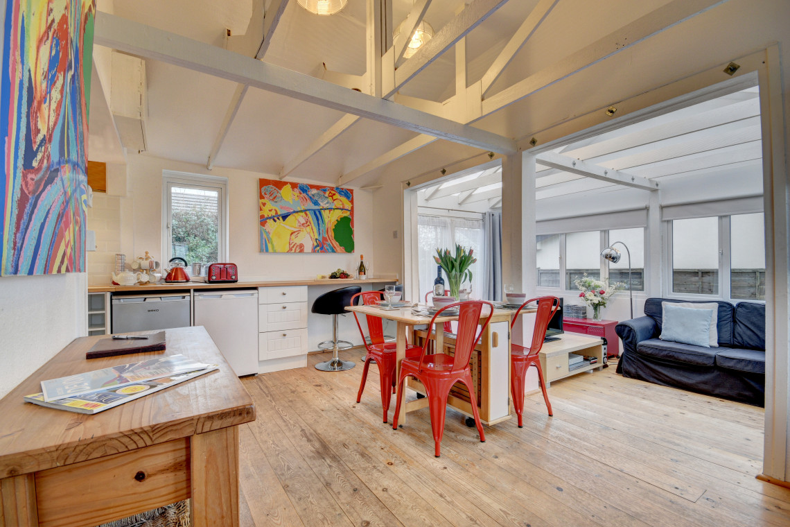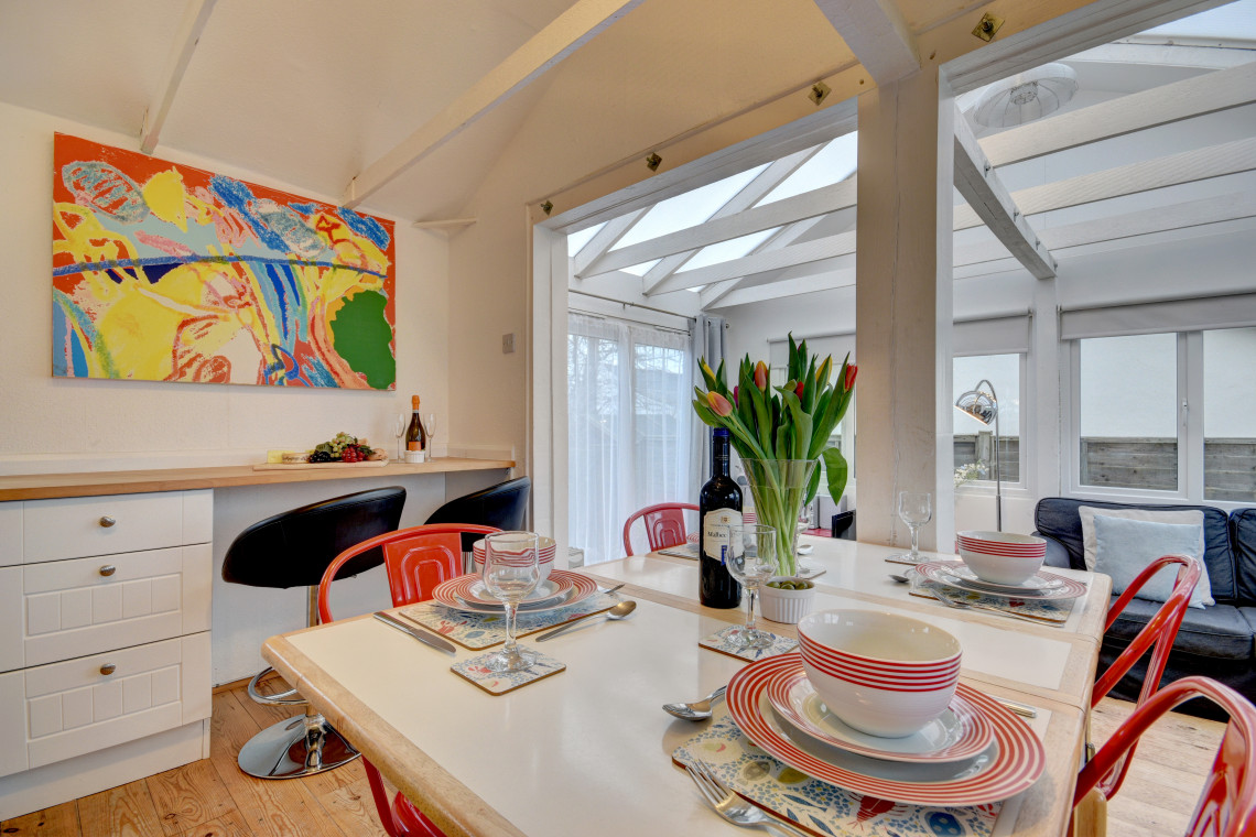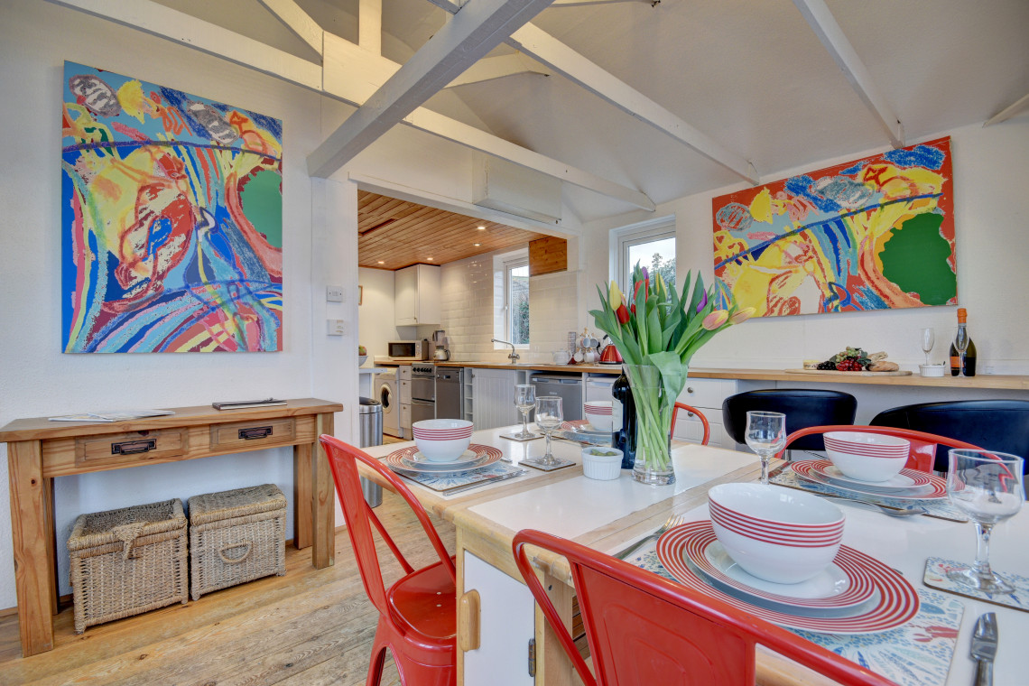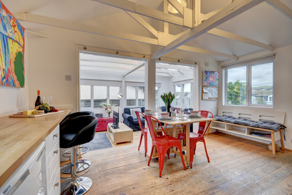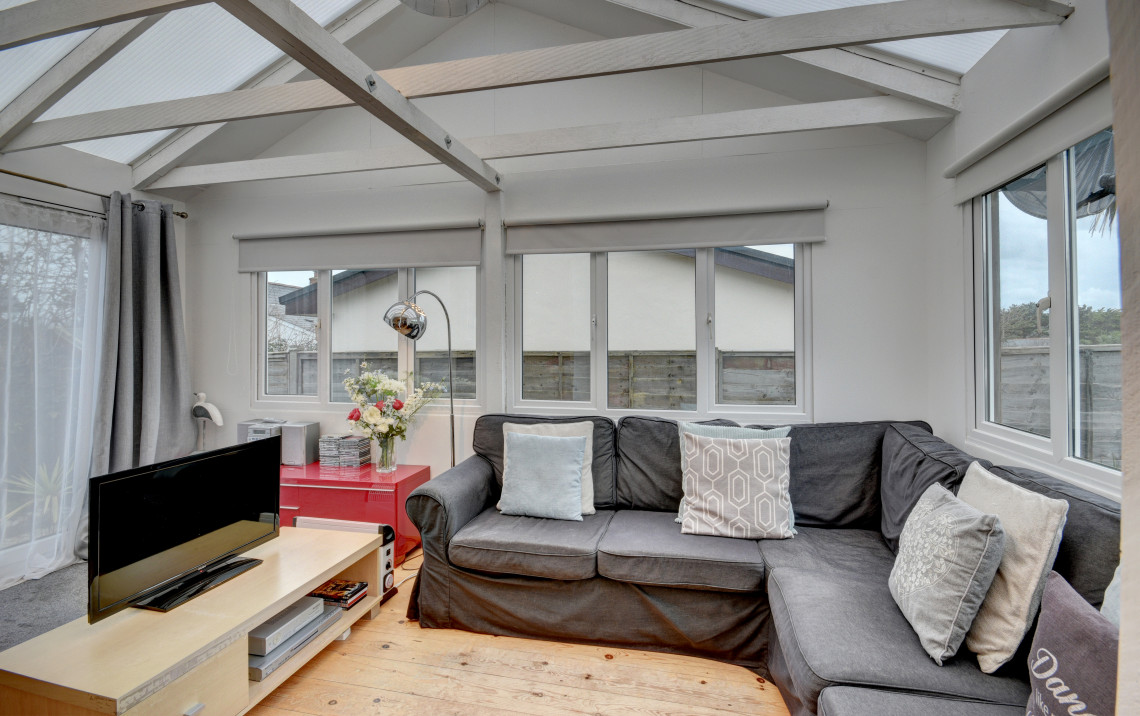 Located just behind the sand dunes at Croyde Bay, this stylish chalet bungalow provides light and airy modern accommodation.