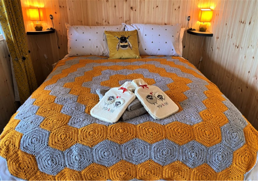 Read MoreThe Beehive is a small rural getaway, surrounded by nature with stunning far reaching views to the sea, on a clear day you can view Bardsey Island and the distant mountains of North Wales. Our cosy little Beehive has everything you need including a fire pit, warm blankets for star gazing on chilly nights. Kitchen and shower room, free WiFi, TV with Netflix a cosy fire and a small seating area. Outdoor decking with an old fashioned swing, table and chairs and sun loungers. Yes! we do get the sun in Wales. We also welcome 2 small, well behaved pets. The Beehive has a small garden area but there are plenty of areas to walk and of course our beautiful beaches are only 20 minutes away. We are well situated in mid Wales to visit North or South with its many attractions. Free parking and a welcome pack awaits our guests.