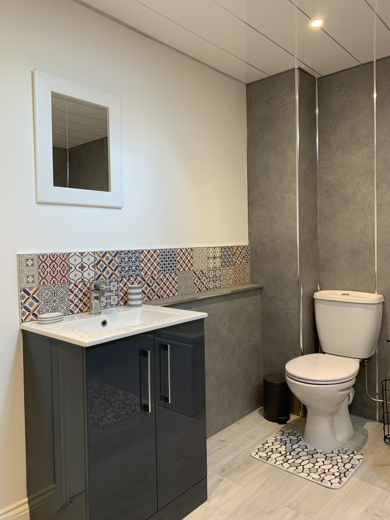 Upstairs consists of a spacious king sized bed, a double bedded room and a twin bedded room there is also a newly fitted bathroom with a separate bath and shower.