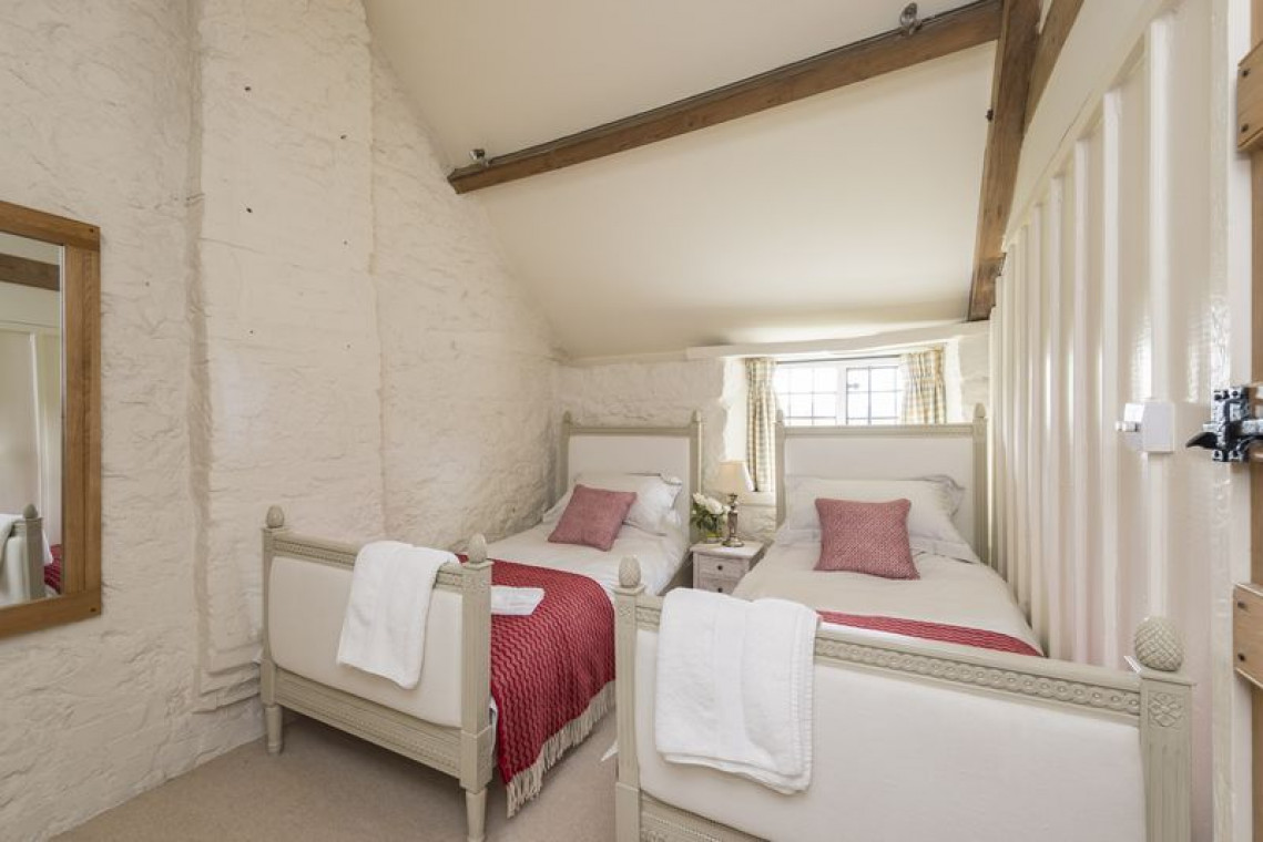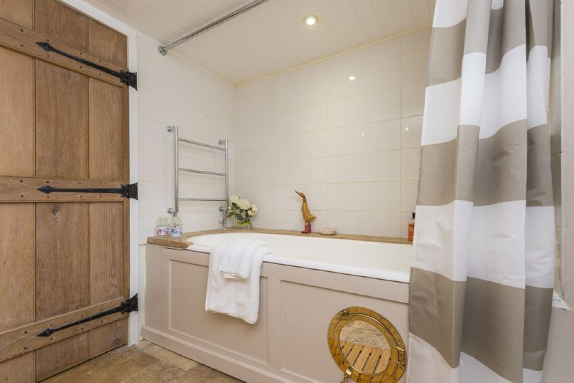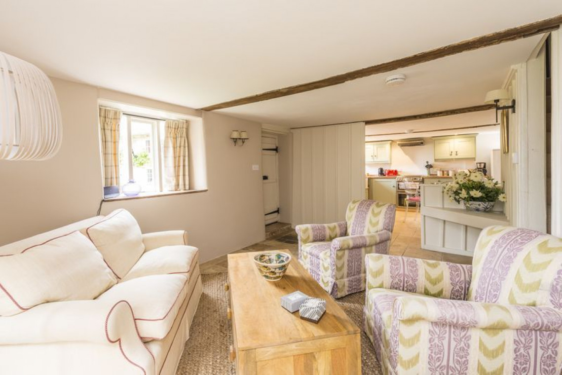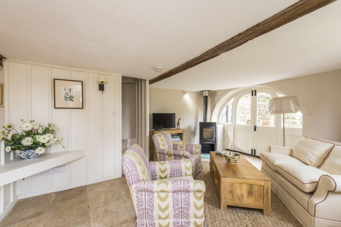 The Cider Mill has a cosy sitting room with wood burning stove and underfloor heating, and french doors leading outside to the external seating area which is perfect for al fresco dining. There is a spacious and well equipped country style kitchen and dining area with seating for four guests. On the first floor there is a large comfortable double bedroom, a further twin bedroom, and a family bathroom. Outside the cottage garden consists of a large lawn with a pretty patio area complete with furniture, a barbecue and rural views.
