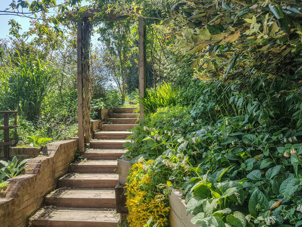 A chine is a steep-sided coastal gorge where a river flows to the sea through eroding cliffs, so keep your pooch on a lead while you stroll through the chine admiring the waterfalls and scenery, and be mindful that there are a few damp parts that might be slippery. There’s a quaint little tea shop to enjoy a short stop-off with an undercover area outside where dogs are welcome. The Isle of Wight boasts a number of chines. We chose Shanklin as one of the quieter attractions and best suited for four legged visitors. It takes around one to two hours to walk Shanklin Chine depending on the number of other visitors and time taken to view the area.