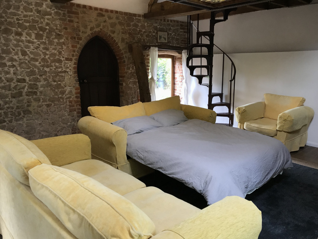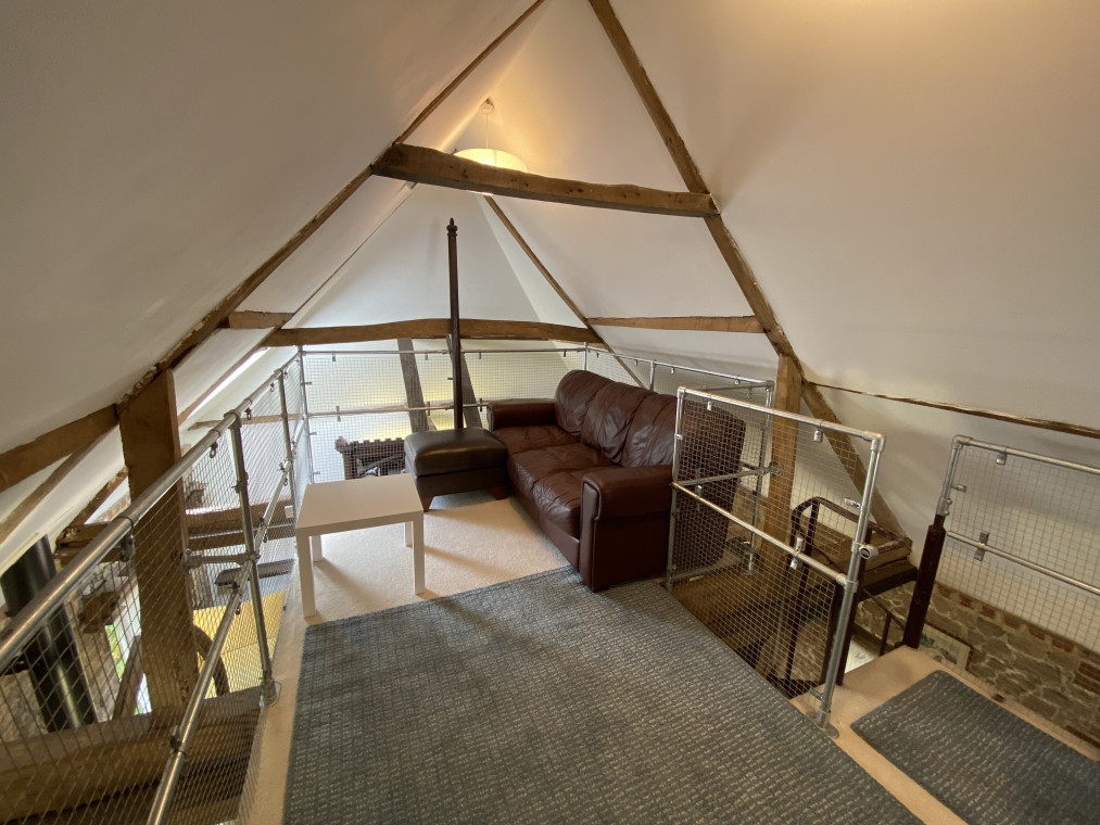 Read MoreThe coach house benefit from newly installed underfloor central heating, using an air source heat pump there is minimal impact on the environment. The grounds are dog friendly with approximately 5 acres of private land to explore and exercise. The property is entered by the porch with place to hang coats and leave muddy boots. The main living space is open plan design, the ground floor comprises of a large lounge with a view of the Manor house gardens, it is furnished with matching arm chair and two sofa's, one converting into a full size double bed, there is a wood burner (if you really like it toasty) and Smart HD TV. From the lounge you walk through to the light and spacious kitchen which has a modern feel with a black and stainless steel finish. There is a dining table and chairs for four, plus a door that leads off to the shower room. The mezzanine floor is accessed via a spiral staircase, it has a second sitting area, work space and double bed. There is a door to a second WC and wash basin for convenience.