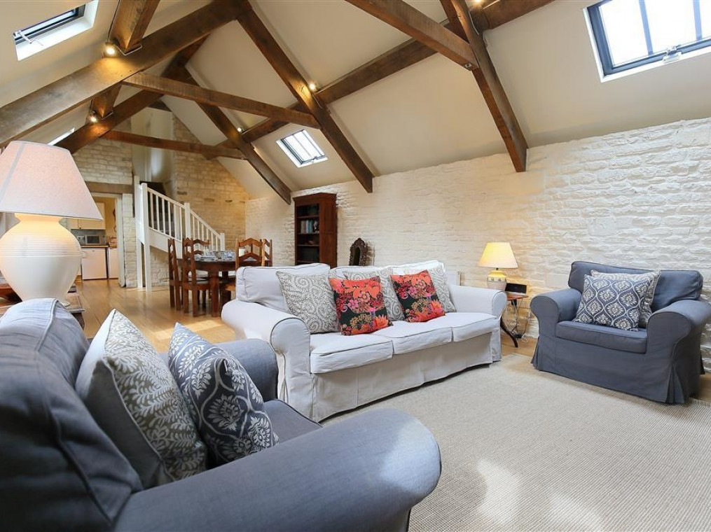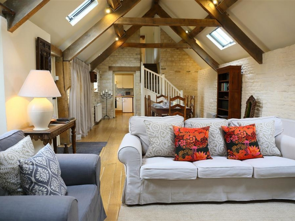 There are few locations such that can match The Coach House and all that it offers. Located in the beautiful grounds surrounding of The Old Vicarage, and overlooking the church in the distance this huge, detached barn conversion is a real gem that befits a classic Cotswolds property - the typical postcard scene of England at its finest. Behind the front door lies an attractive and spacious home, the huge main room with vaulted ceiling and beams is spectacular, cream washed walls, oak flooring and open fire create a warm and special home. Upstairs, where there are great views to the valley, there's an enormous bedroom, with two extra beds if required*. Tucked down a little lane within one of the most popular Cotswold's villages - Swinbrook, you really do get a sense of why people love this village and area of the Cotswolds. A superb AWARD WINNING pub The Swan is a 3 mins stroll away, which serves some excellent food and has a great spot on the river. Burford is just 2 miles away - via a stunning walk along the River Windrush. We love this cottage for many reasons - we think you will too. One bedroom: 1 x king sized double with en suite bathroom with bath shower over, basin and WC. Bedroom 2: Twin room on open plan landing with access to en suite bathroom. Kitchen. Dining area. Living room. Please note the twin room is not suitable for children under 7 as it is open plan and close to the staircase. Amenities for Rental Central heating. Electric hob, oven and grill, fridge, freezer, washing machine, tumble drier, dishwasher and microwave. 32 inch flatscreen TV, DVD, WIFI. Fuel and power inc in rent. Bed linen and towels inc in rent. Gravelled area with table and chairs. Off road parking. Pets welcome. No smoking inside. Shop 2 miles, pub 0.25 miles. Please note the twin room is not suitable for children under 7 as it is open plan and close to the staircase.