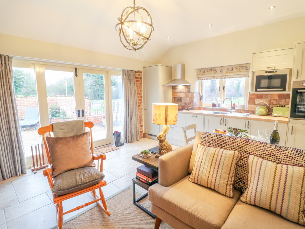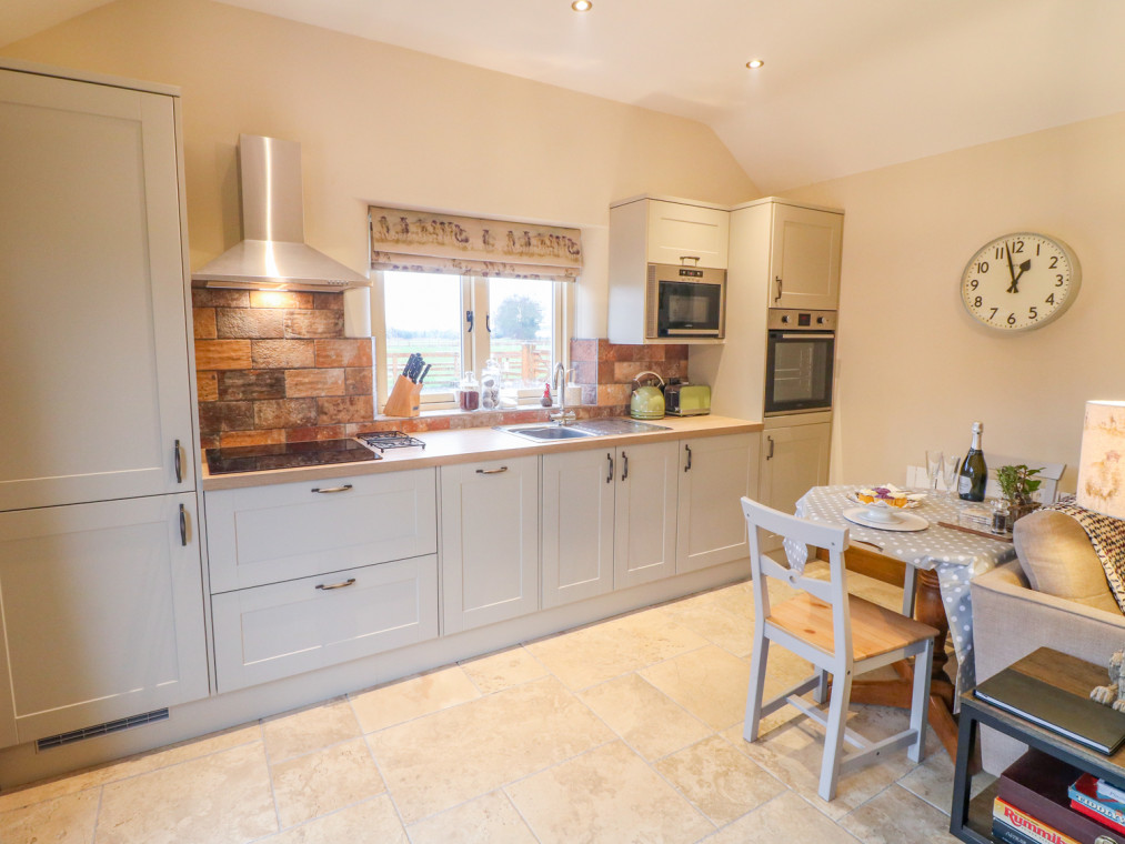 The Dairy is a detached single-storey cottage, in the rural setting of North Scarle, Lincolnshire. With views over open countryside, it provides the perfect retreat for couples to relax and recharge the batteries. Offering all ground-floor level access accommodation, suitable for those with limited mobility, the property has been renovated to provide high-quality living. There is a spacious open-plan living area, with a TV and DVD player. With a lovely warming woodburner for those cooler evenings. The stylish fitted kitchen boasts modern units and worktops, providing ample space for preparing home-cooked meals. There is a convenient dining area where you can enjoy your romantic meals together. The tasteful king-size bedroom has an en-suite shower room, with a large walk-in shower so you can prepare for your day in style. Outside has an enclosed south facing courtyard garden, with a patio area, so you can sit out and enjoy the sun with a refreshing glass of wine. There is direct access to dog walking around the fenced paddocks. Situated in the rural countryside, you will have access to many nearby towns and villages with wonderful tourist attractions including the historic centres of Newark and Lincoln with cathedral and castles as well as historic houses and gardens to visit. It is an ideal location for walking and cycling, golf, fishing as well as bird watching at the nearby nature reserve. For aviation enthusiasts the area is known as Bomber County and has a wealth of aviation history. For a great day out, Lincolnshire and Newark show grounds host events throughout the year, including food and antique fairs and concerts as well as a range of other attractions. The Dairy is the ideal place for a romantic holiday in the heart of the countryside. All ground floor. One bedroom: 1 x king-size with en-suite shower room with walk-in shower, basin and WC. Open-plan living room with a kitchen, dining area and sitting area with woodburning stove. Amenities for Rental Electric heating, woodburning stove Electric oven and ceramic hob, microwave, fridge/freezer, dishwasher TV with Freeview, DVD player, a selection of books and DVDs and WiFi Fuel, power and starter pack for stove inc. in rent Bed linen and towels inc. in rent Travel cot and highchair available Off-road parking for 1 car Enclosed south facing courtyard with furniture and BBQ One well-behaved dog welcome Sorry, no smoking Shop 1 mile and pub 1.1 miles Note: Due to rural location, Wifi is only suitable for browsing and not for streaming and downloading Note: Property is near a country road, therefore associated noise maybe heard There is also mobility equipment available on request which consists of mobility aids such as raised toilet seat (4 inches), shower chair and free-standing toilet frame, available on request.