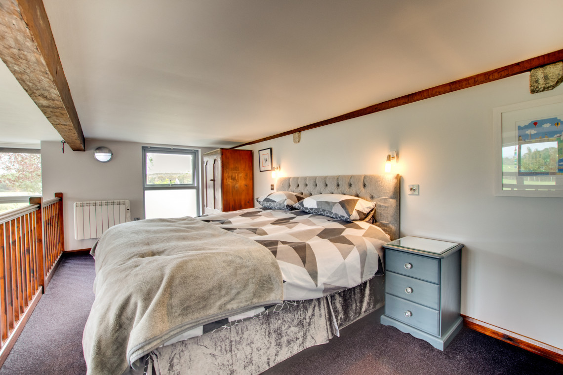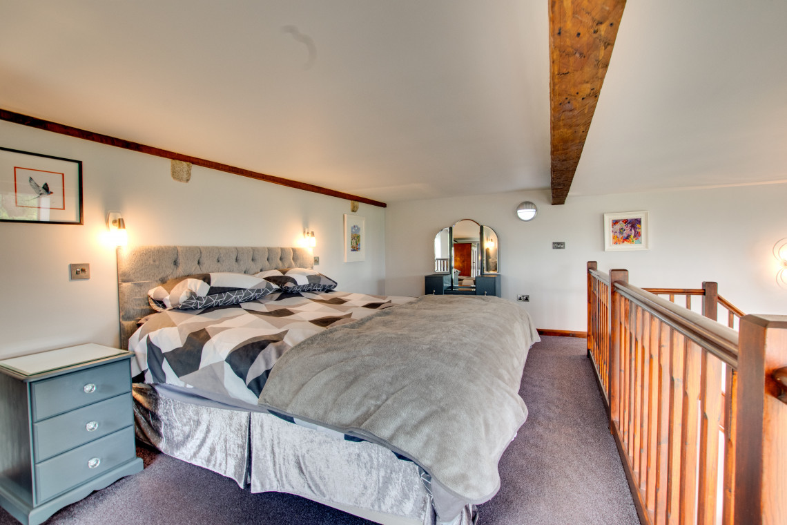 MEZZANINE FLOOR: Super king size bed with storage space. NB: There is limited head height space on this level at 6ft 4 .