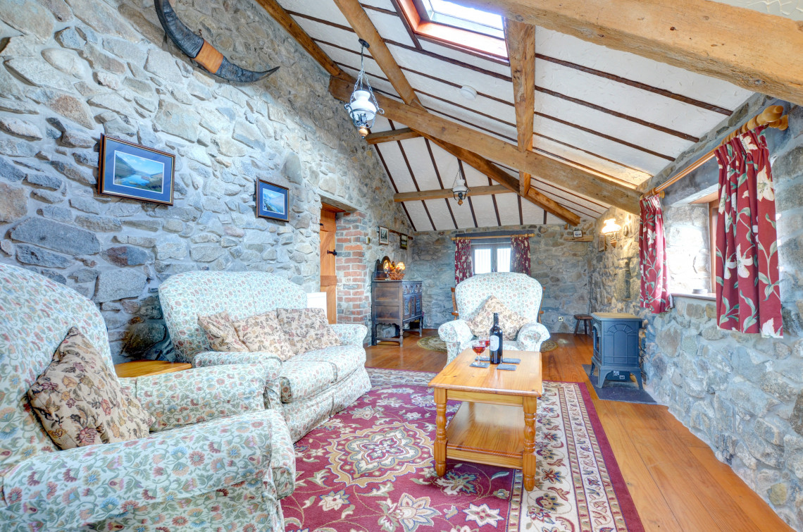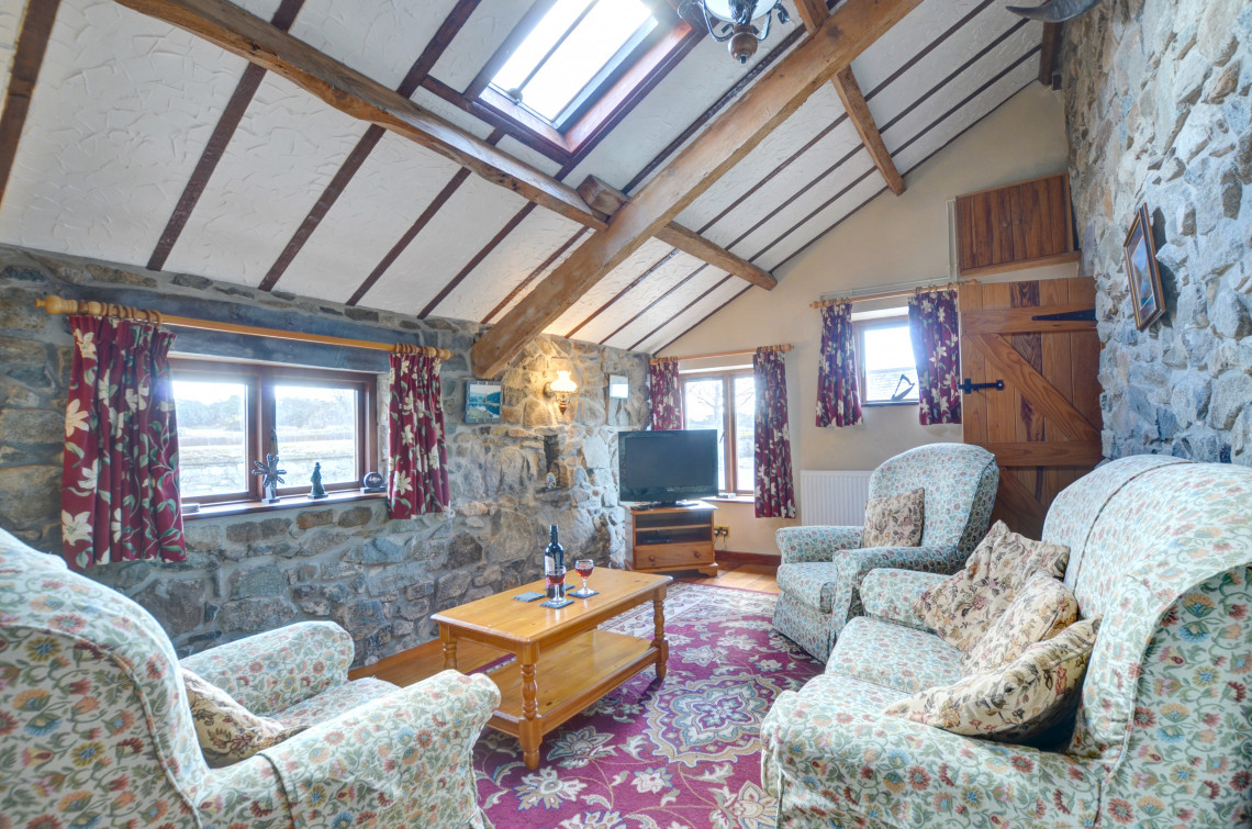 Three miles from Caernarfon on a working farm is a cottage converted from a former granary and called The Granary. This charming property has lovely views over Caernarfon Bay and good walks from the front door. Six miles away is Dinas Dinlle with its sandy beach and there are the attractions of the harbour, castle, fort, sports centre and swimming pool in Caernarfon.