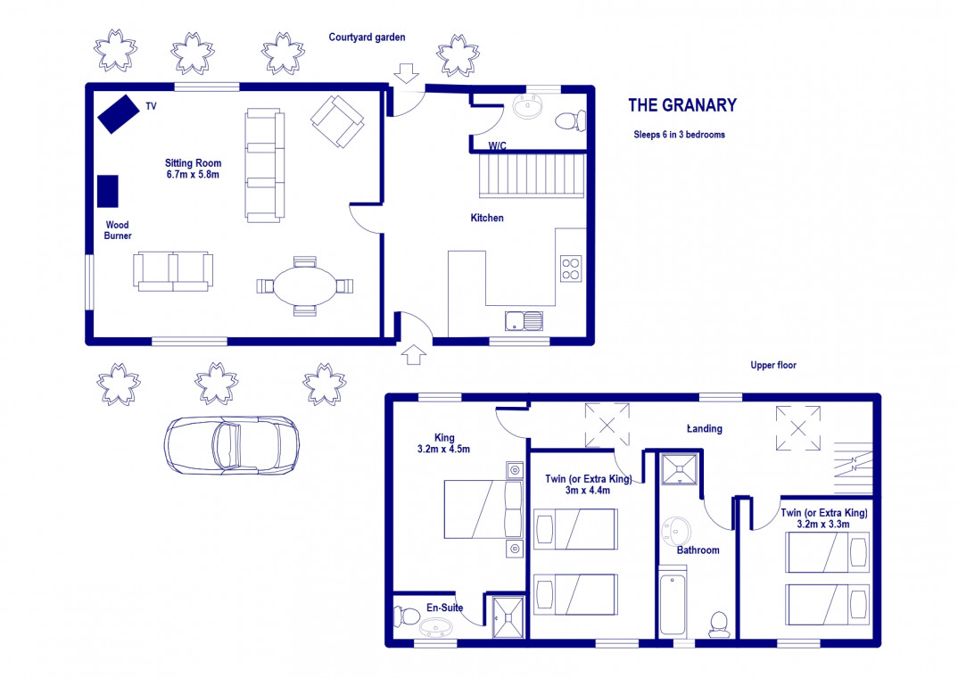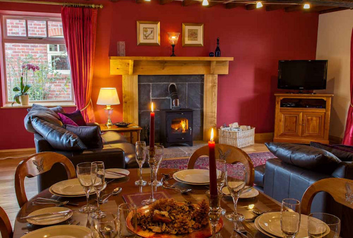 Read MoreFormally a grain store now a stunning 5 star Gold Award 3 bedroom holiday cottage that will sleep 6 - a travel cot is provided if required. On the ground floor a spacious hall leading on to the kitchen area, which is well equipped with a dishwasher and washing machine. There is a separate downstairs cloakroom beyond the stairs. The real wow factor in this barn conversion comes with the large living room, there is a dining area and seating area with large comfortable squashy leather sofas and a wood burning stove. This extremely spacious room has a beamed ceiling with oak floors and colourful rugs. Upstairs three bedrooms, two zip & link that can be either a twin or a superking and a king sized master bedroom with ensuite shower room. Travel cot available. Family bathroom with bath and separate shower. The cottage has underfloor heating throughout and a wood burning stove in the living room. Floor plans and virtual tours on the website Outside there is a lovely private patio & garden area with garden furniture. Rated 5 star with a Gold Award by Visit England.