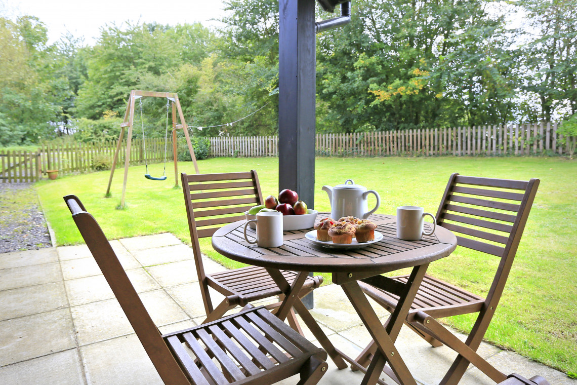 - Outside: rear garden is laid mainly to lawn plus terraced area with garden furniture, and barbeque, please supply your own charcoal.