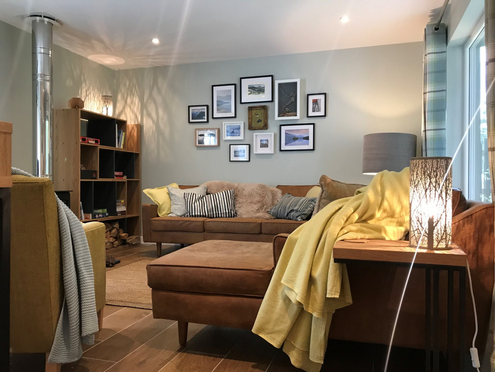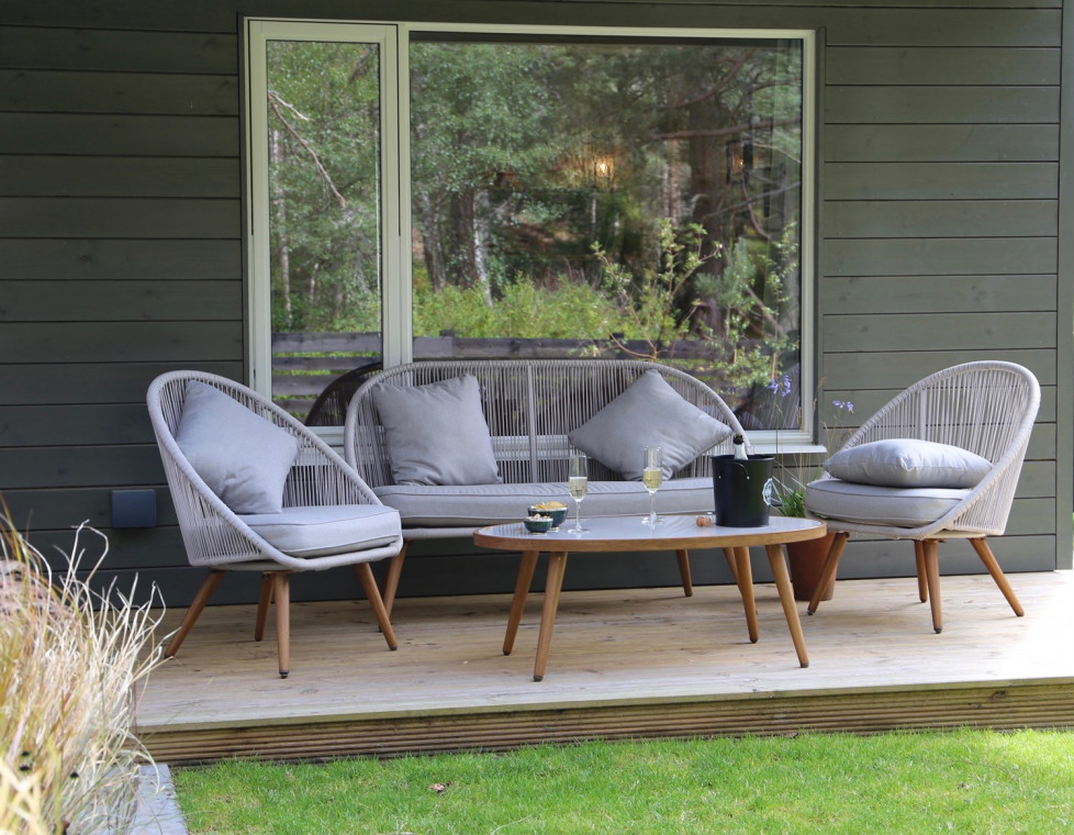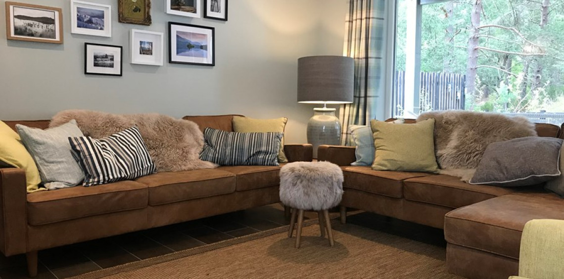 At the heart of the Cairngorms National Park in the sought-after destination of the Rothiemurchus estate, The Green Lodge Aviemore awaits your visit. The Green Lodge welcomes one or two well behaved dogs, and offers a secure, enclosed garden at the back of the lodge, and an outside tap for hosing off the worst of the mud. We provide an emergency supply of dog towels in case you forgot, as well as a dog bed, blanket and bowl. There are wonderful walks all over the National Park, but one loop in particular is perfect for that early morning or late afternoon dog walk. Leaving the Green Lodge, you just cross the road and plunge into the woods, going through the most glorious and varied scenery with breathtaking views of the Cairngorms. Find your home-made map in the doggy welcome basket. Built in 2017, this superbly comfortable pet-friendly lodge sleeps eight people and has been furnished to the exacting standards of its hill-walking, mountain-biking owners. Sure, the beautiful woodland location can’t be beaten. But it doesn’t stop there: the Green Lodge has been furnished with the best of everything that you need to make this a holiday you will absolutely love, from the coffee machine that helps you make the perfect cappuccino to the wood fired pizza oven for creative cooks, from the map wall to help you plan your active days to the blissful supersized beds to give you a heavenly night’s sleep. You will be hard pressed to choose between the many activities on your doorstep, especially when it means tearing yourself away from the families of red squirrels and woodpeckers that are daily visitors to the garden. Step out of the door onto the Old Logging Way and start your adventures on foot or by bike, or take a short drive to one of many iconic Scottish Highland golf courses nearby. Potter through the woods with the kids to the nearby climbing wall, swimming pool, zip wires and tennis courts, or grab lunch at the local farm shop and cafe. Eating and Drinking at the Green Lodge You may not plan to eat in every meal, but when you do, you’ll find everything you need. With generous supplies of china, cutlery and glassware and a well-equipped kitchen, there are all the appliances you’d expect such as an oven, microwave, hob, kettle, toaster, dishwasher, along with staples such as tea, coffee, sugar, olive oil, salt and pepper. And sharp knives – with a sharpener for those for whom it matters. There’s other stuff you might not expect, like a slow cooker, so you can throw stuff in it in the morning and come back from your bike ride to a meltingly good casserole, and a herb garden planted up for you to use – help yourself to rosemary, thyme and sage, and in summer parsley, dill, coriander and basil. Depending on the season of your visit, there might be alpine strawberries, tomatoes, or apples to pick. Then there’s the Heston Blumenthal Sage Oracle Touch coffee machine, that makes your choice of latte, flat white, cappuccino, espresso or long black – and froths the milk for delicious hot chocolate too. It’s easy to master, and I’ve put a video here showing how to use it. Outside in the garden, of course there’s the barbecue – both charcoal and gas, you choose which you prefer. What isn’t standard is the freestanding wood fired pizza oven – it makes the most heavenly pizzas (and roasts), and is just the thing to tempt those who don’t usually cook into feats of culinary deliciousness. Whether you're out walking, cycling or golfing you'll want to relax when you get back to the Green Lodge. The living room seats eight on comfy sofas and armchairs, with footstools so you can get into your perfect position. Gather and watch the flames play in the wood burning stove, or choose a film from our selection of some 700 on our 47" smart TV. Kids wanting a separate chilling space congregate on the bean bags in the top hall - with lots of plugs for their devices there'll be no arguments over the charger. Outside we've got comfortable seating both at the south facing herb terrace - a positive sun trap and a great spot for morning coffee with the papers (pick them up from the Hilton, just a short walk through the woods) - and in the back garden, which gets the sun for the whole of the afternoon and evening.