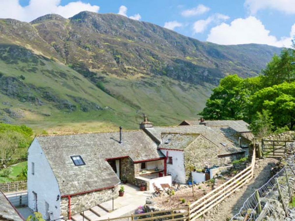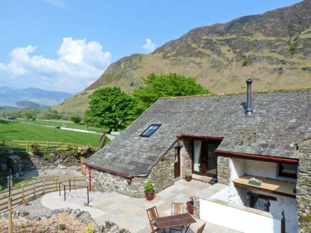 An outstanding first floor barn conversion, situated on a working farm in the Newlands Valley, five miles from Keswick. The Hayloft is one of our premier Keswick cottages and is situated in some of the finest countryside in the whole of Lakeland; from its position on the fell it commands the most awe-inspiring views of the valley and the surrounding fells, making it an ideal base for couples looking to enjoy this beautiful area. This quality Lakeland cottage has been fully renovated to provide first class, contemporary holiday accommodation with much character and style, still retaining many of the barn's original features such as old beams and the original window reveals. This Lake District cottage boasts a beautiful open plan living area with a warm and cosy woodburning stove, a modern well-equipped kitchen and lovely feature windows to take advantage of the spectacular views of the fells. The bedrooms in this Lake District cottage are located at either end of the living area and contain splendid super king-size, zip and link beds, along with superb en-suite facilities. Outside, a lovely Lakeland cottage garden adds the final piece to this delightful Lake District cottage. With great walks from the doorstep, including the Newlands Horseshoe, a five-hour walk with breathtaking views of Skiddaw and Blencathra, this is a perfect destination for those who love the great outdoors. Just a couple of miles from your Lake District cottage the village of Braithwaite offers traditional old pubs and well-stocked village shops and the lovely old Lakeland town of Keswick, with its many attractions, is just a short drive away. A wonderfully romantic Lakeland cottage retreat, in a fabulous location, whatever the time of year. All first floor. Two bedrooms: 2 x super king-size double (zip and link), both with en-suite shower, basin, WC and heated towel rails. Open plan living area with fitted kitchen, dining area and sitting area with woodburning stove. Separate utility, bike storage and kennelling area on ground floor of barn. Amenities for Rental Oil central heating with woodburning stove in sitting area Electric oven and hob, microwave, slow cooker, fridge/freezer, washing machine, tumble dryer, dishwasher, Smart TV with Freeview, CD, radio, selection of books, games and DVDs, Superfast WiFi Fuel and power inc. in rent, fuel for woodburning stove provided on honesty box basis Bed linen and towels inc. in rent Cot and highchair Off road parking for 2 cars Small rear garden and patio with garden furniture One well-behaved pet welcome Sorry, no smoking Shops 3 miles, pub 1 mile Note: The cottage is accessed via rear steps leading to a level entrance by the garden A ramp also runs to the entrance Note: The owners provide a steel kennel/cage in the utility room for pets if required.