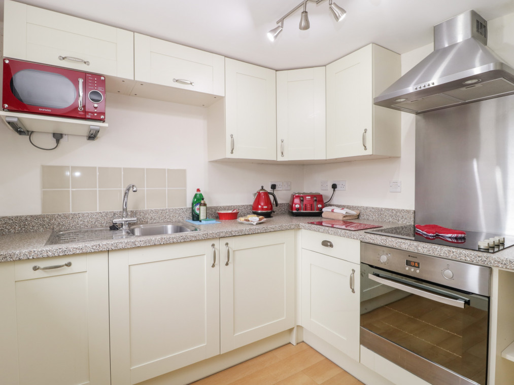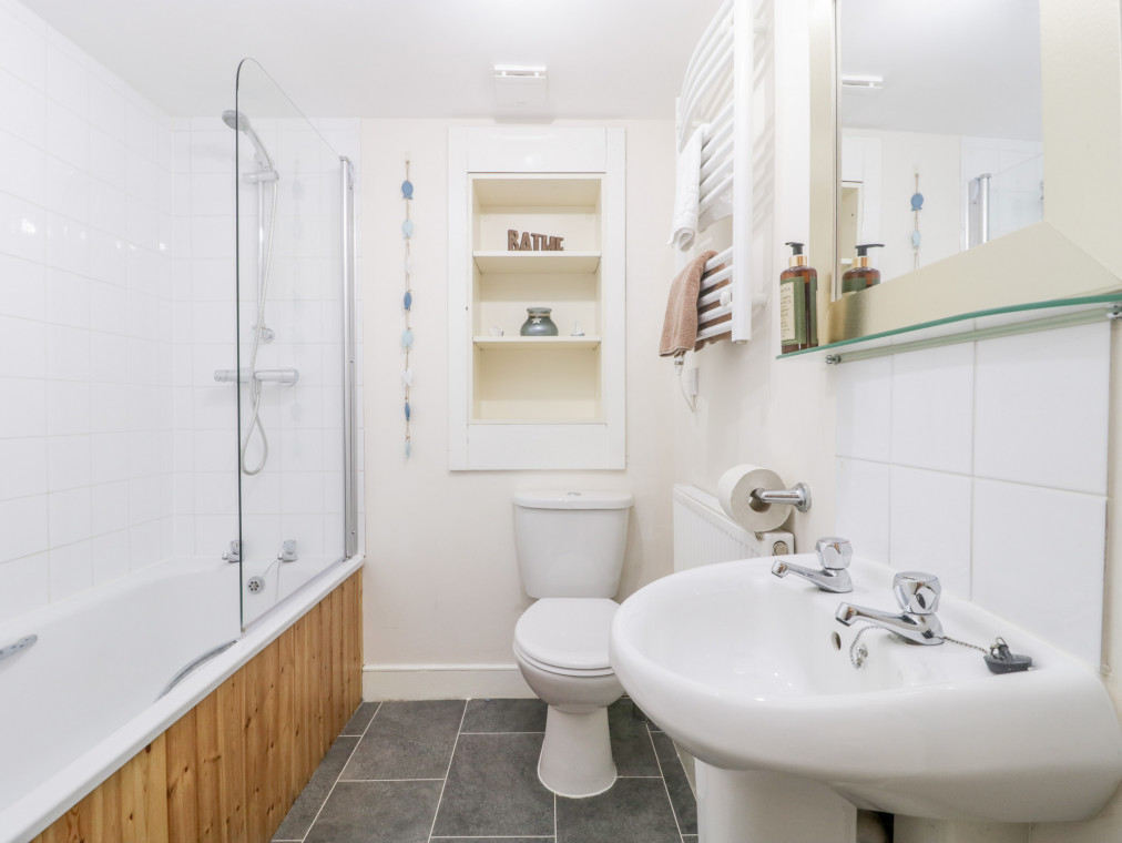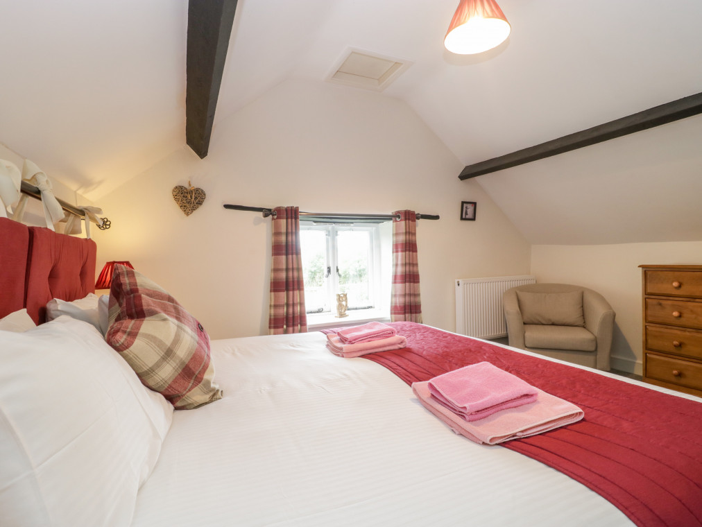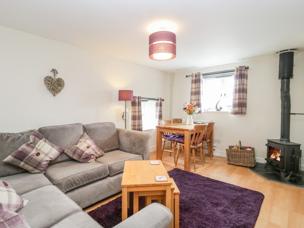 Two bedrooms: 1 x super king-size double (zip/link, can be twin on request), 1 x double. Bathroom with bath, shower over, basin and WC. Kitchen. Sitting room with dining area and woodburning stove.
