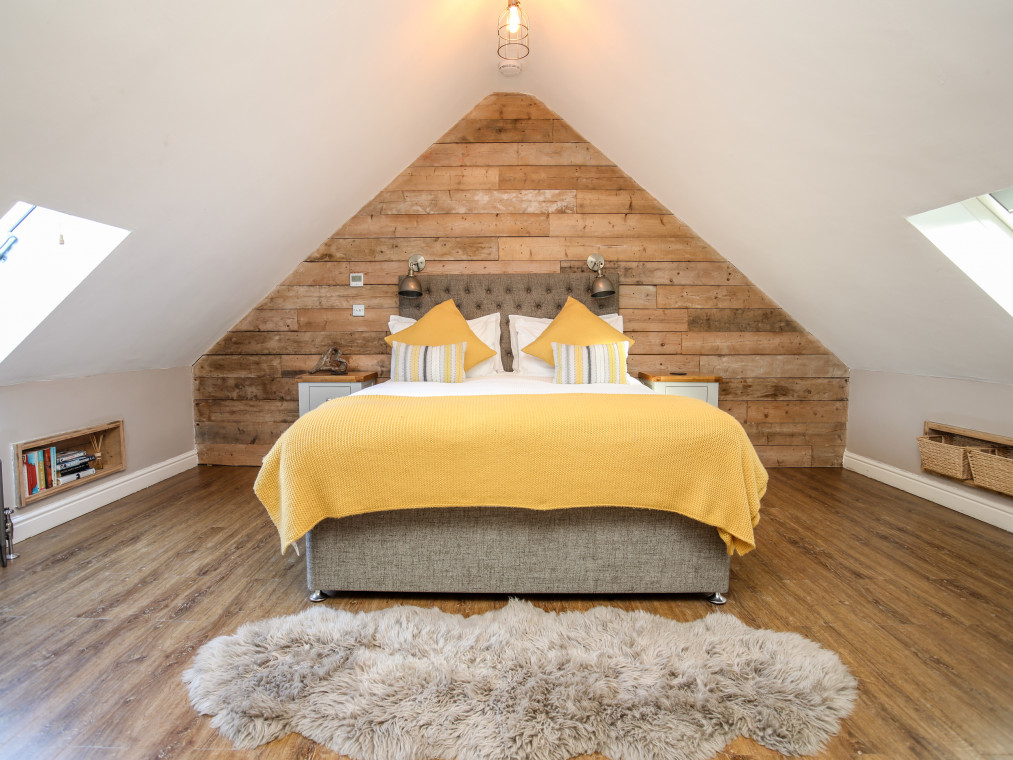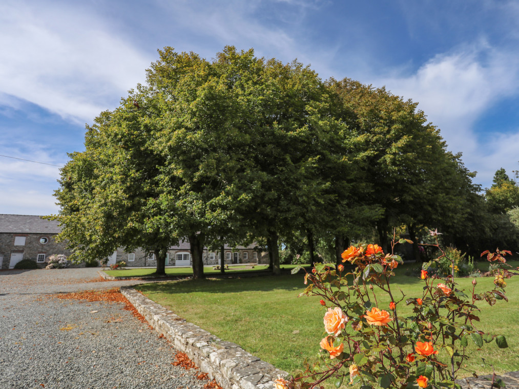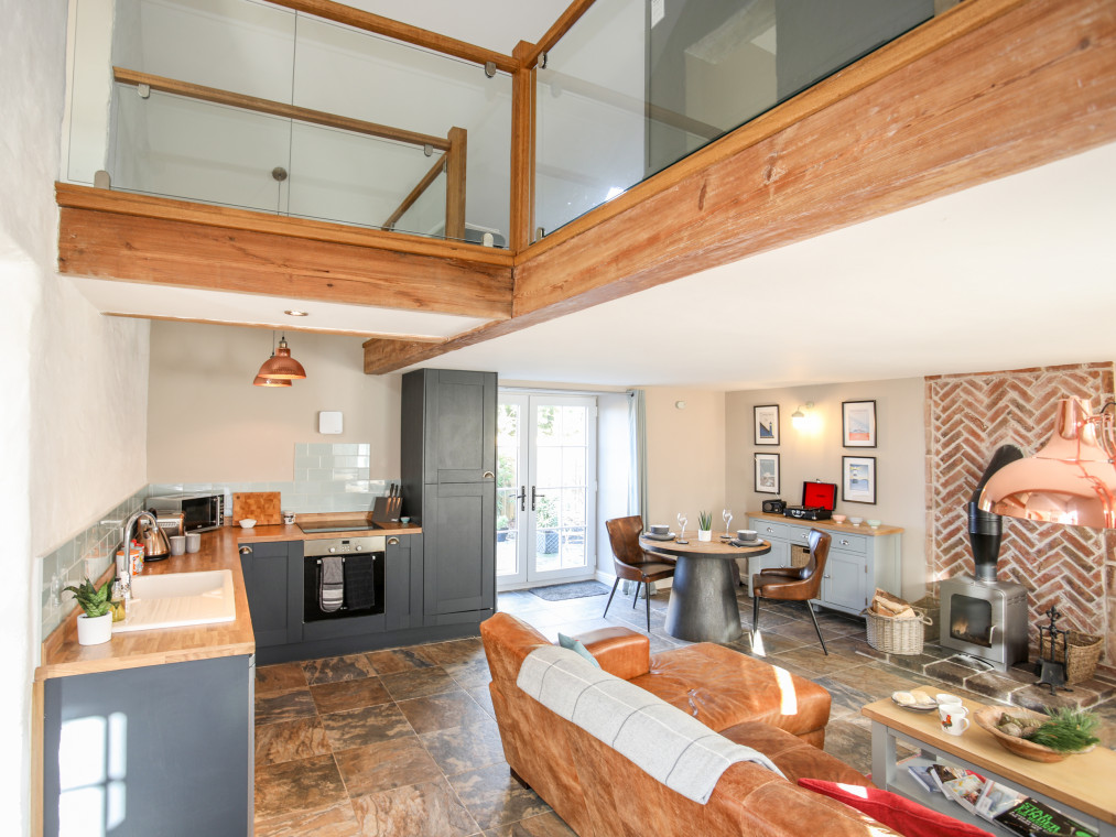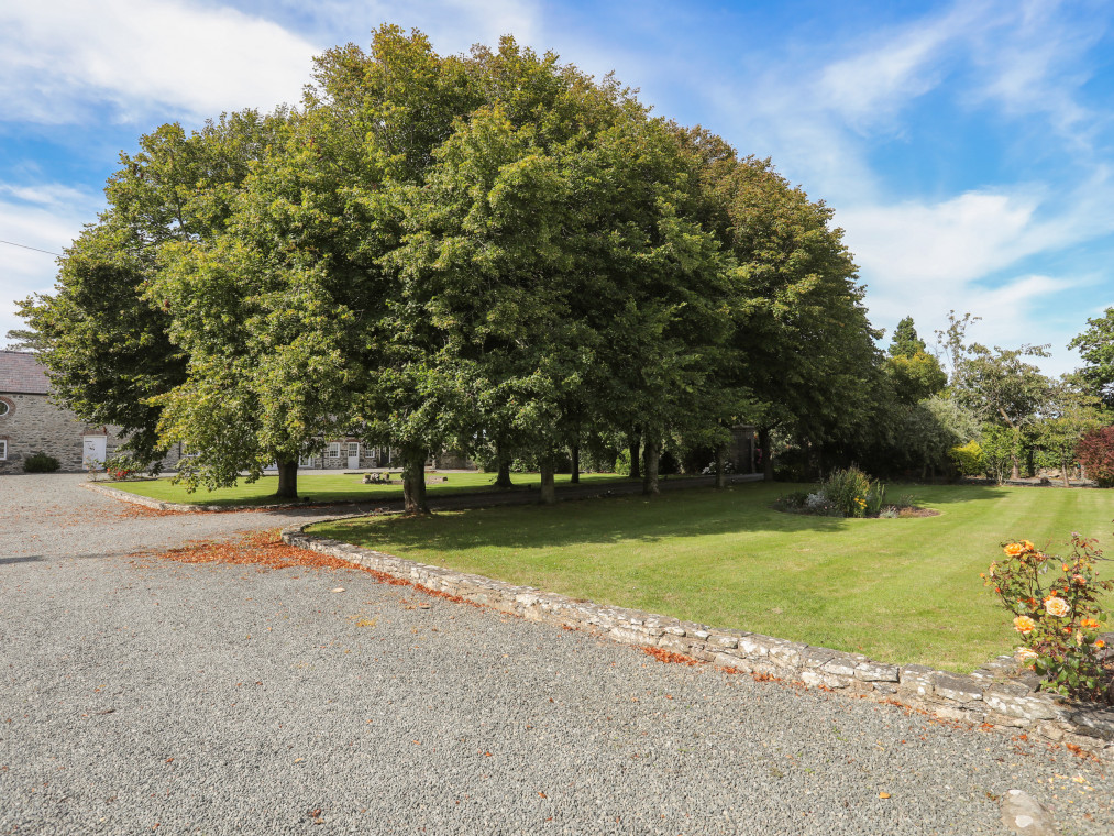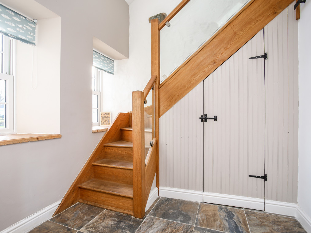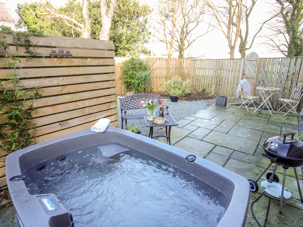 Rhosneigr 4 miles. Offering a pretty retreat in the heart of the Isle of Anglesey is this charming cottage, The Hayloft, a wonderfully converted hay barn now providing stunning holiday accommodation. Perfectly suited to a couple looking for a romantic break, this cottage lies in Bryngwran and is part of the Rhosneigr Country Plas, a beautiful estate built by the Sheriff of Anglesey in 1886. Step inside the open-plan living space and be amazed by the contemporary interior within this vintage property, where a leather L-shaped sofa sits atop the slate flooring, opposite the woodburning stove and the TV, creating a wonderful, relaxing set up to return to after a busy day. Beneath exposed beams and feature copper lighting lies the sleek kitchen, with dark blue units housing a fabulous range of appliances for cooking up a romantic meal for two, to be served at the dining table which sits by the lovely French doors overlooking the patio. Enjoy sitting out here in your own private space and dining alfresco on a summer’s eve, afterwards taking a dip in the bubbling hot tub beneath the stars. A beautiful and unique feature of this property lies within the bathroom, set aside an hour and soak in the amazing free-standing copper bath, with a quirky feature made of the basin set atop a barrel, and a beautiful, large walk-in shower here too. Travel up the wooden stairs to the mezzanine level bedroom, settle under the covers of the double bed beneath the clopping ceilings and rest for the night amidst this thoughtfully decorated space. Head south to the coast at Rhosneigr and pick up any amenities you need from the local shops, dine in one of the restaurants with a sea view, or simply walk along the coast for some spectacular scenery. Some of the best surfing beaches can be found here including Town and Broad Beach, so you can practice your skills on the waves, with surfboards available to hire locally too. As well as being within easy reach of the express way to access many more beautiful locations, The Hayloft is a fantastic romantic retreat. One double bedroom. Bathroom with free-standing copper bath, walk-in shower, basin and WC. Open-plan living space with kitchen, dining area and sitting area Amenities for Rental heating with woodburning stove Electric oven, induction hob, dishwasher, fridge, Smart TV Fuel and power inc. in rent Bed linen and towels inc. in rent Off-road parking Enclosed garden with hot tub and seating Dog-friendly Sorry, no smoking Shop within 2.7 miles, pub within 1 mile