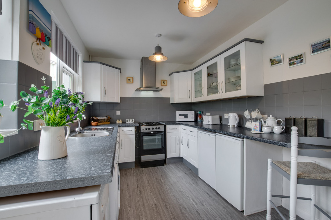 - Kitchen & utilities: Gas 4 ring hob, gas oven, slim line dishwasher, washing machine, under counter fridge, under counter freezer.