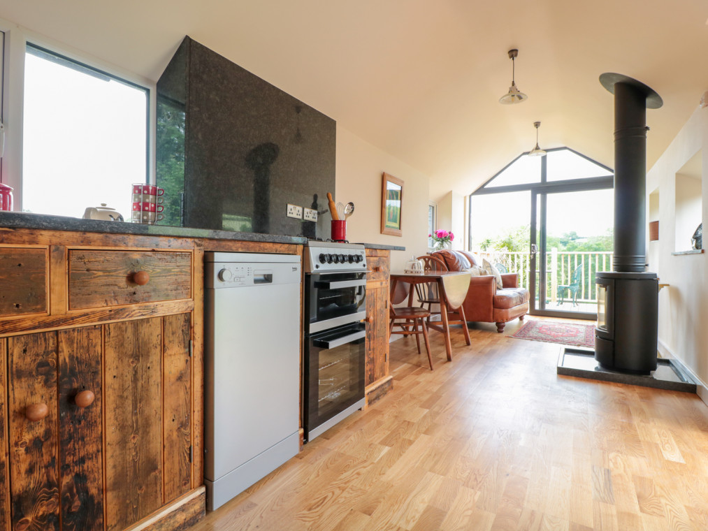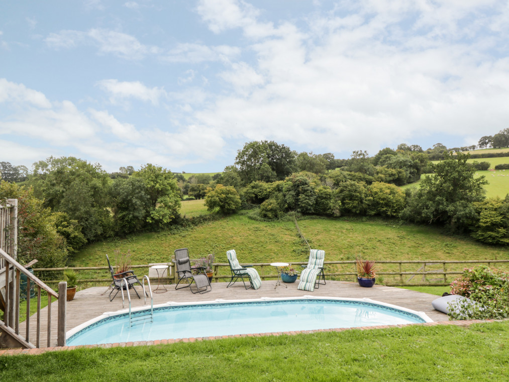 The Hideout is situated in the delightful Herefordshire village of Llangrove and has far reaching views of the surrounding countryside. A detached, south facing apartment in a beautifully converted outbuilding beside owners’ house. Ideally suited to couples, this stylish, one-bedroom conversion is a fabulous base in which to enjoy your holiday in the countryside. Enter the property through a stable door leading to a contemporary interior of the open-plan living space, where you can unwind into the plush leather sofa amongst the woodburning stove to enjoy a romantic evening in with your loved one. Take advantage of the well-equipped kitchen to rustle up a delicious dinner for two, when you’re not exploring the cuisines of the nearby delicious restaurants, or choose to dine alfresco on the private balcony overlooking the pool. Rest and rejuvenate in the double bedroom, serviced by a gleaming shower room so you can decide how best to prepare for your day ahead. The Hideout is a glorious property from which to base your exploration of the Wye Valley with your loved one. Note: This property can be booked with Ref. 993207, together sleeping four people. One bedroom: 1 x double. Shower room with walk-in shower, basin and WC. Open-plan living room with kitchen, dining area and sitting area with woodburning stove. Amenities for Rental Gas central heating with woodburning stove Dishwasher, electric oven, gas hob, TVs and WiFi Bed linen and towels inc. in rent Fuel and power inc. in rent Unlimited free logs for the woodburning stove Off-road parking for two cars Shared use of solar heated swimming pool and private decked area with furniture Sorry, no smoking. 2 well-behaved pets welcome Dog friendly pub within 0.6 miles, shop within 2.5 miles Note: Shared swimming pool available dependent on the weather during summer months only Note: Property is all on ground floor but property accessed by steps.