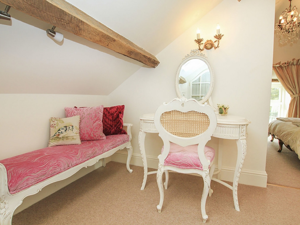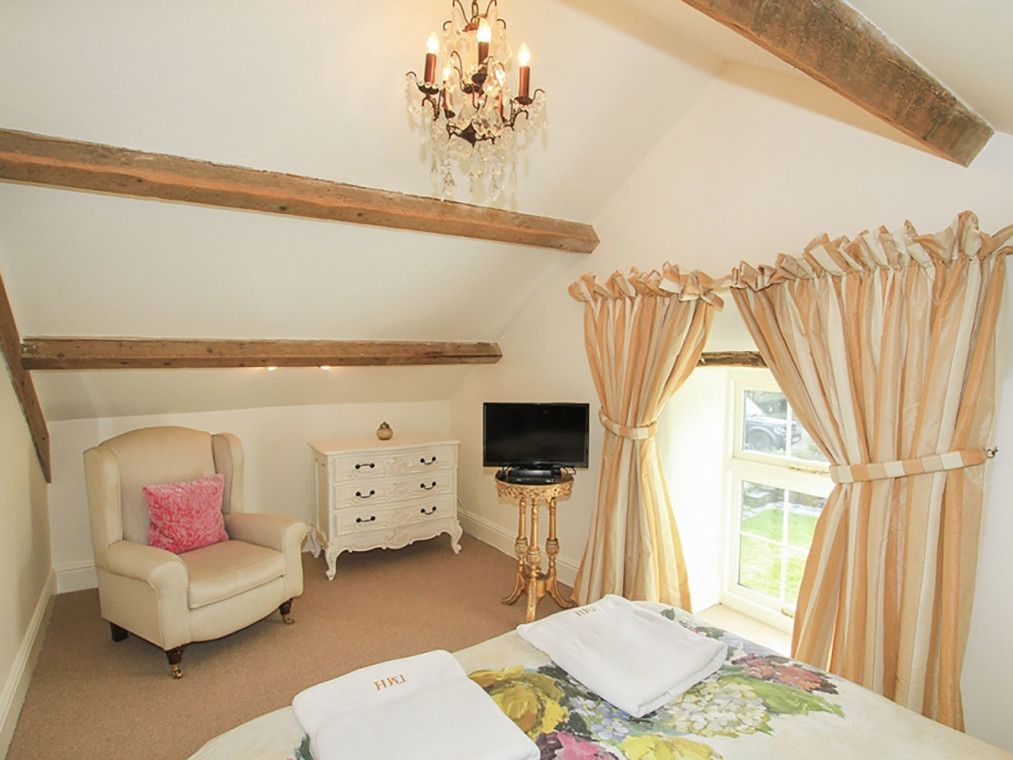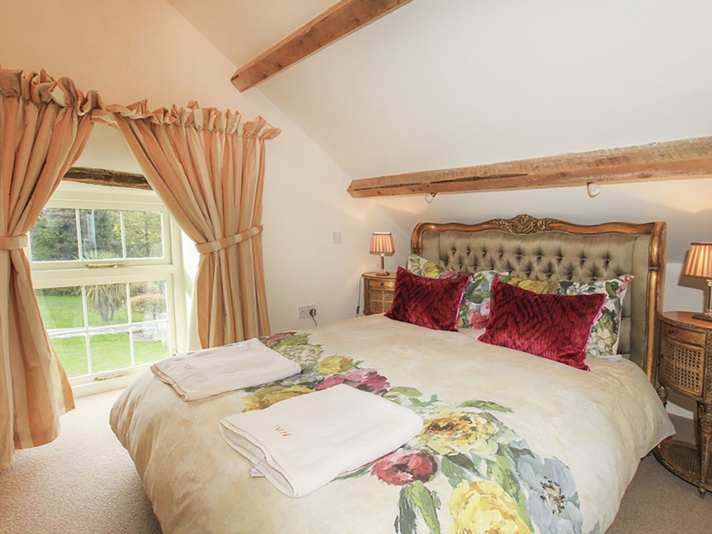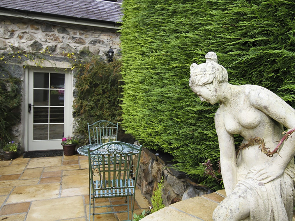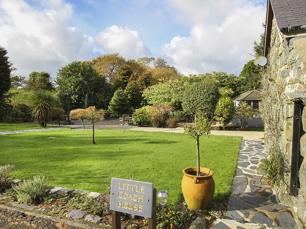 The Little Coach House is one of two fabulous holiday cottages set within the tranquil grounds of Tyddyn Mawr House nestled in the beautiful Welsh countryside near Porthmadog. There is 14 acres of land to explore, including well-maintained gardens, with seating areas tucked around every corner, and a delightful summer house stocked with library books and DVDs. The bright and airy open planned living space optimises the ground floor of the cottage. The kitchen is well equipped with everything that you could need with a dishwasher, washing machine, electric oven and hob, fridge / freezer, microwave and Nespresso coffee machine. There is a dining table for up to four people and a comfortable seating area with a TV, DVD player and electric fire. There is a ground floor loo with hand basin. The gorgeous ensuite double bedroom has a king size bed, TV with built in DVD player and attached dressing room with built in wardrobes and dressing table. The bathroom has a bath with shower attachment, loo, towel radiator and hand basin. Outside there is a private and enclosed paved seating area. You can also explore the 14 acres of shared grounds which includes attractive gardens, a summer house, a lake for wild swimming or fishing and farmed fields. The Little Coach House is a wonderfully romantic cottage, with ample space and a private courtyard garden. The cosy, comfortable furnishings, bold French pieces and a traditional dressing room give this cottage a real touch of luxury. You could easily spend a holiday here without ever needing to leave the grounds, but if a day’s exploration is on the cards you have the historic town of Criccieth with its castle and beaches, the shops and heritage railway of Porthmadog and the Snowdonia National Park all just a short drive away. If you need a little extra space, The Honey Pot is also available in the grounds sleeping a further four. Please note that there are live stock in the fields so dogs must be kept on leads in specific areas. One bedroom: 1 x king size bed. Bathroom with bath, shower attachement, WC and basin. Ground floor cloakroom with WC and basin. Open plan kitchen, dining and seating area. with electirc fire. Amenities for Rental Central heating with electric fire Electric oven and hob, fridge freezer, dishwasher, washing machine, microwave, Nespresso coffee machine TV, DVD, WiFi Bed linen and towles provided Ample off road parking Enclosed paved seating area in addition to 14 acres of shared grounds with gardens, summer house, lake One dog welcome Pubs, shops and restaurants 4.5 miles NOTE There is livestock around the land so dogs must be kept on a lead NOTE: Can also be booked with The Honey Pot that sleeps 4.