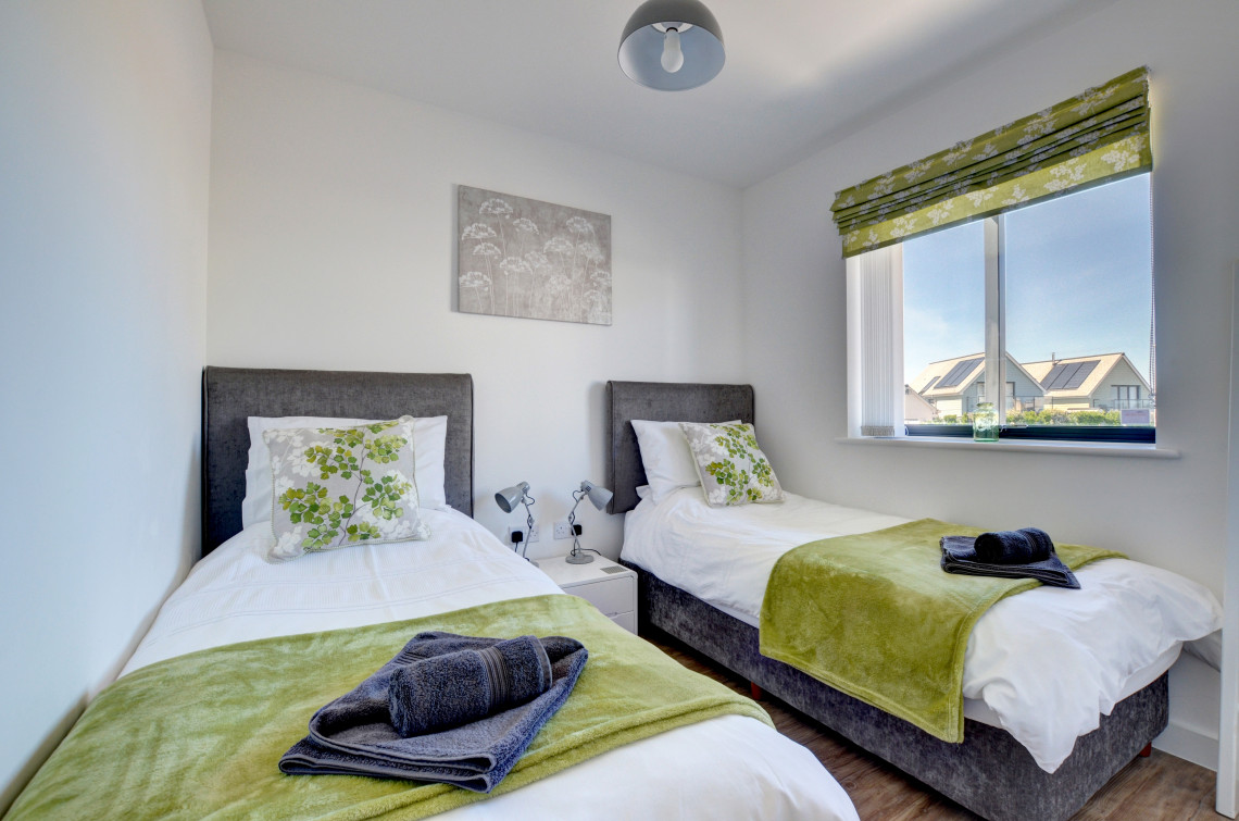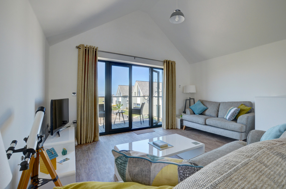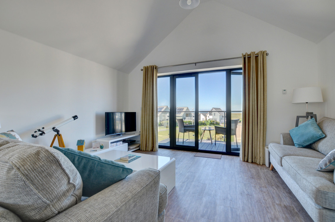 The Lookout is on a small exclusive development located between the surfing resort of Westward Ho! and Northam Burrows Country Park and offers private access to Northam Burrows and adjoins the Royal North Devon Golf Club. Wonderful sea and coastal views can be enjoyed from the spacious open plan living area situated on the first floor with bi-fold doors leading onto a balcony. There are two bedrooms on the ground floor, a good size master bedroom with ensuite shower room and French door leading out into the fully enclosed patio garden and a twin bedded room served by a super family bathroom.