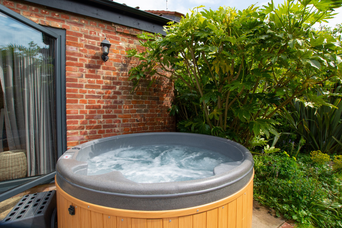 - Outdoors: Fully enclosed garden with hot tub, patio, lawn, barbecue, table and chairs