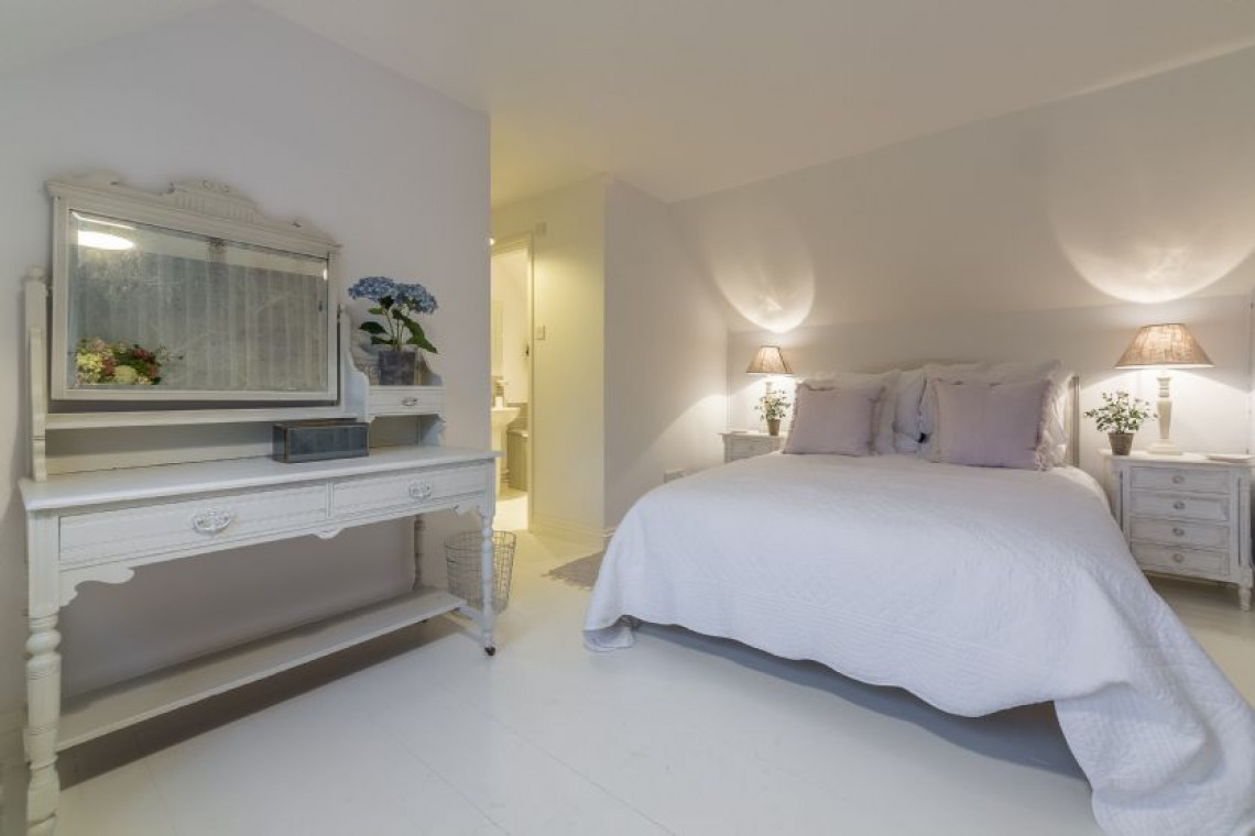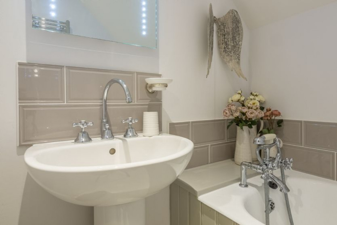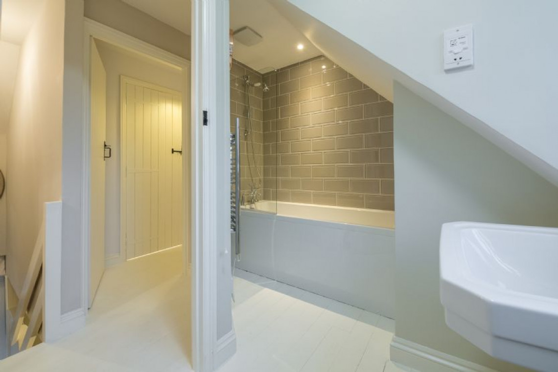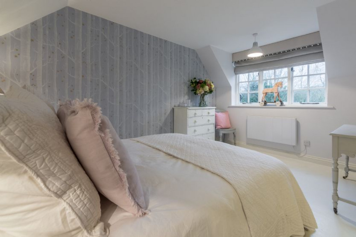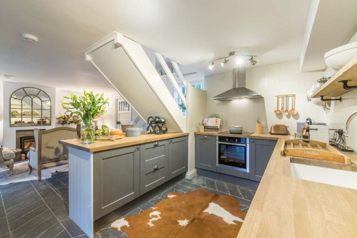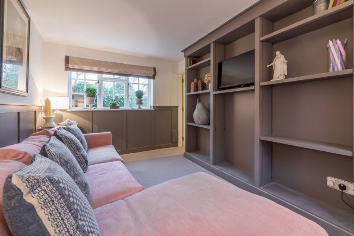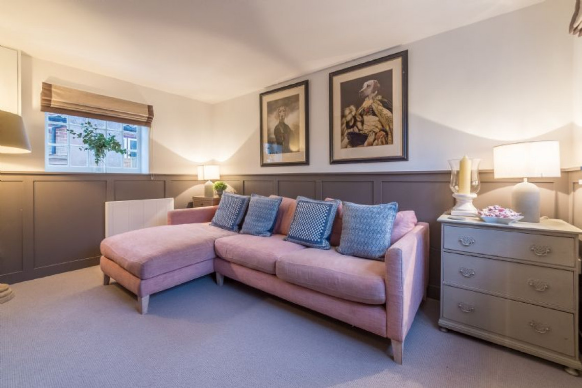 Enter the front door and walk into an open-plan, light-filled living space combining the kitchen, a dining area and an elegant, but cosy seating area around a wood burning stove (pour a glass of wine, open a good book and take a pew). Double french doors lead out onto the terrace (with glazed canopy and bespoke dining table) and pretty parterre garden, with open rural views beyond. At the rear of the room, a door opens into a wonderful chill-out, dual aspect snug/cinema-style tv room, with sumptuous four-seater sofa and widescreen television inset into library shelving and door opening onto the patio. Upstairs are two glamorous bedrooms (king-size and super-king zip-and-link, both dressed with high thread count linen) and two bathrooms.