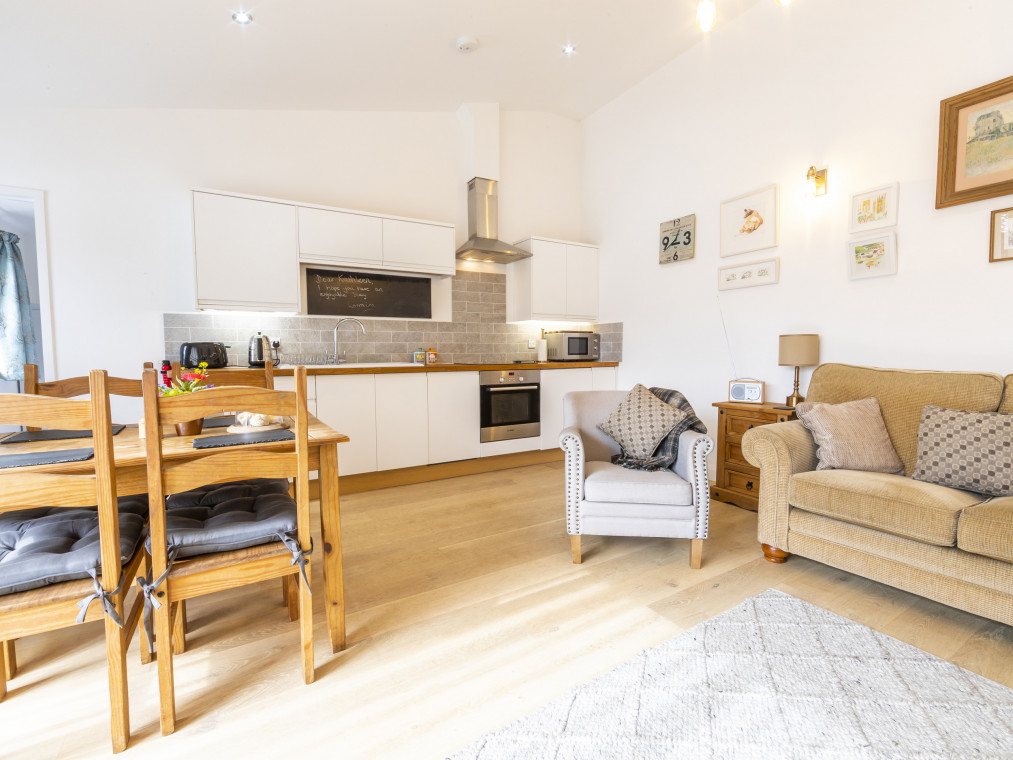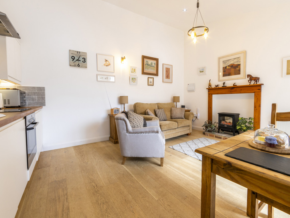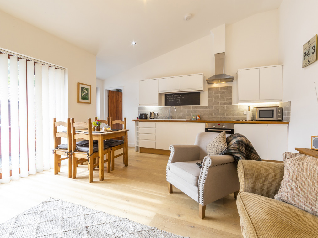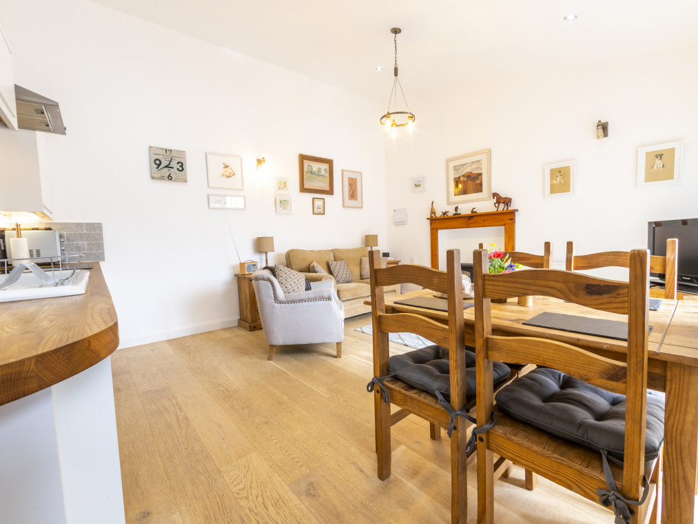You enter this fantastic cottage into the open plan living area which has a well-equipped kitchen, a bespoke dining area and a very comfortable sitting area where you can relax in front of the living flame-effect electric fire. The sumptuous bedroom has been decorated to a high standard and leads to the en-suite shower room which has a window set into the high ceiling to ensure this room is light and airy. Outside is a private gravelled area where you can enjoy your breakfast on a sunny morning. Note: This property is opposite ref 947945, together they sleep 4. All ground floor. One king-size double bedroom with en-suite shower, basin and WC. Open plan living area with kitchen, dining area and sitting area with living flame-effect electric fire. Amenities for Rental Electric central heating with living flame-effect electric fire Electric oven and hob, microwave, fridge, slimline dishwasher, washing machine, TV with FreeSat, WiFi, selection of books Fuel and power inc. in rent Bed linen and towels inc. in rent Off road parking for 1 car Front patio with furniture Two well-behaved pets welcome Sorry, no smoking Shop and pub 1 mile Note: There are two steps up to enter the property.