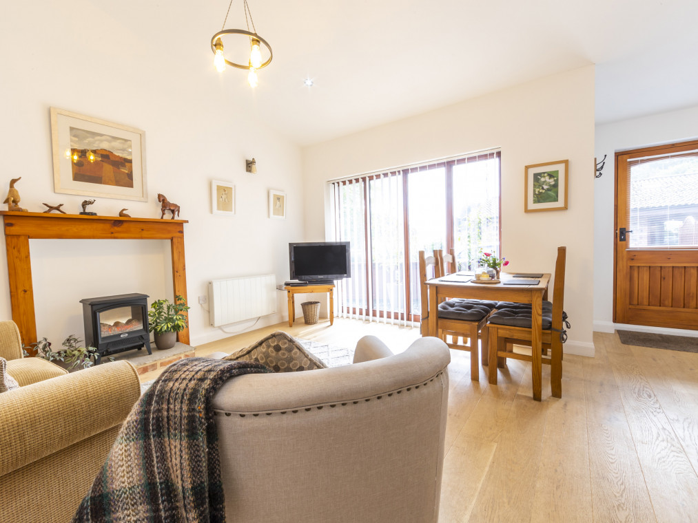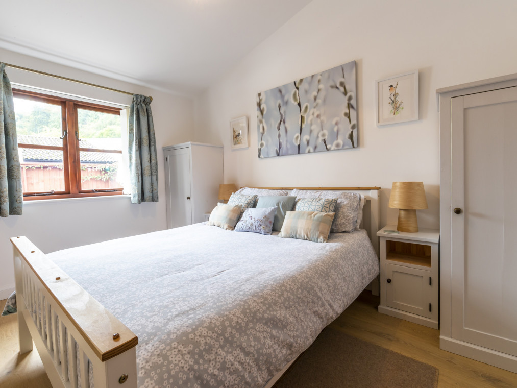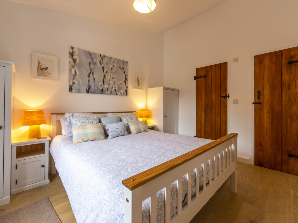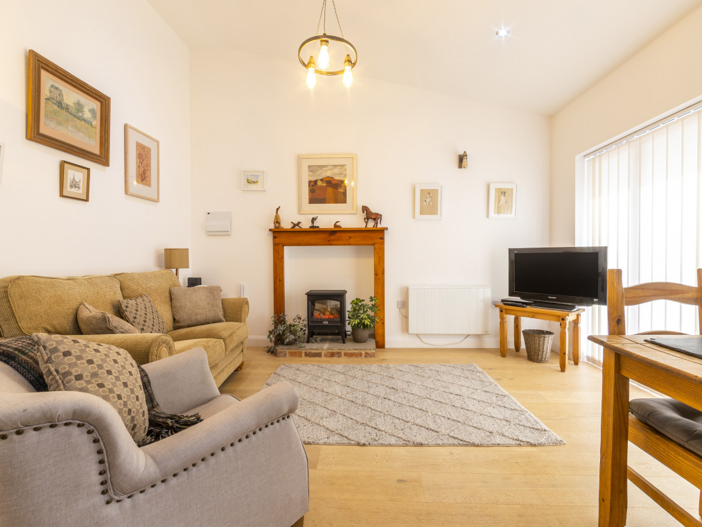 You enter this fantastic cottage into the open plan living area which has a well-equipped kitchen, a bespoke dining area and a very comfortable sitting area where you can relax in front of the living flame-effect electric fire. The sumptuous bedroom has been decorated to a high standard and leads to the en-suite shower room which has a window set into the high ceiling to ensure this room is light and airy. Outside is a private gravelled area where you can enjoy your breakfast on a sunny morning. Note: This property is opposite ref 947945, together they sleep 4. All ground floor. One king-size double bedroom with en-suite shower, basin and WC. Open plan living area with kitchen, dining area and sitting area with living flame-effect electric fire. Amenities for Rental Electric central heating with living flame-effect electric fire Electric oven and hob, microwave, fridge, slimline dishwasher, washing machine, TV with FreeSat, WiFi, selection of books Fuel and power inc. in rent Bed linen and towels inc. in rent Off road parking for 1 car Front patio with furniture Two well-behaved pets welcome Sorry, no smoking Shop and pub 1 mile Note: There are two steps up to enter the property.