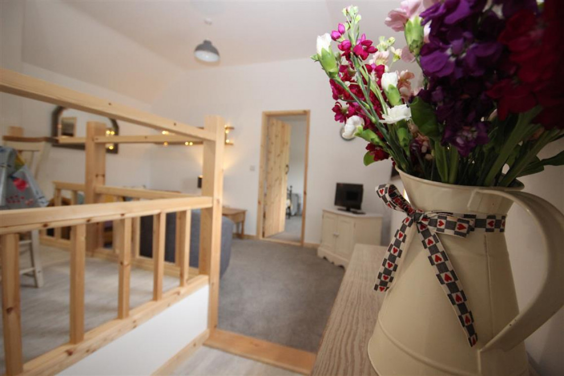 Outside to the front is a shared (with owner) gated entrance on a gravel surface. The Old Dairy has dedicated private parking for two cars and its own garden area with furniture provided. The gravel area immediately to the front of the property has a picket fence enclosing it so that your dog can go in and out of the property freely with no problem. The remaining garden area is mainly laid with gravel and a small area of lawn with shrubs and is partially enclosed.