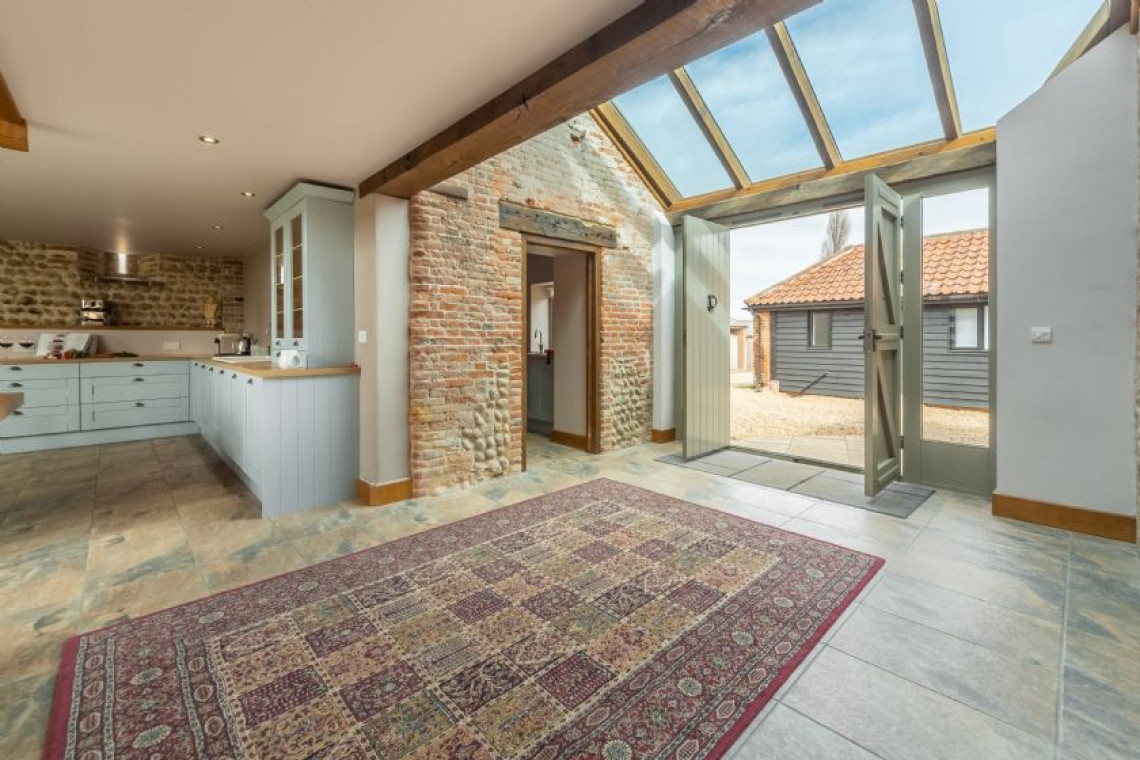 The Old English Barn and Cart Shed, dating back to the 1700s, is the epitome of a luxurious yet laid-back bolthole, ideal for large multi-generational families and groups of friends who enjoy the finer things and are looking for a peaceful, relaxing escape, just two miles from the traditional seaside resort of Mundesley and its many amenities. The Old English Barn and Cart Shed, dating back to the 1700s, is the epitome of a luxurious yet laid-back bolthole, ideal for large multi-generational families and groups of friends who enjoy the finer things and are looking for a peaceful, relaxing escape. A perfect place to stay all year round, it's stylish, sophisticated, spacious and bursting with character, situated in an idyllic rural setting but only two miles from the traditional seaside resort of Mundesley and its many amenities.
