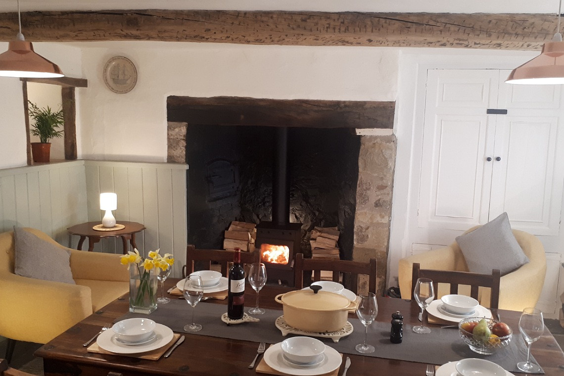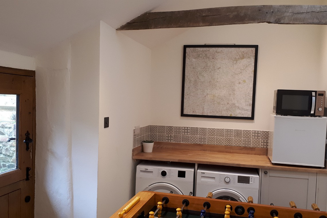 There is a lounge with Smart TV and open fire as well as plenty of books and board games. The dining room has a log burner in the original inglenook fireplace providing plenty of warmth through the cooler months of the year. The kitchen is fully equipped with modern appliances including a dishwasher. The utility has a washing machine and tumble dryer and also doubles as a games room with our vintage Harvard football table.