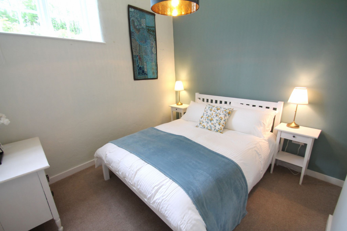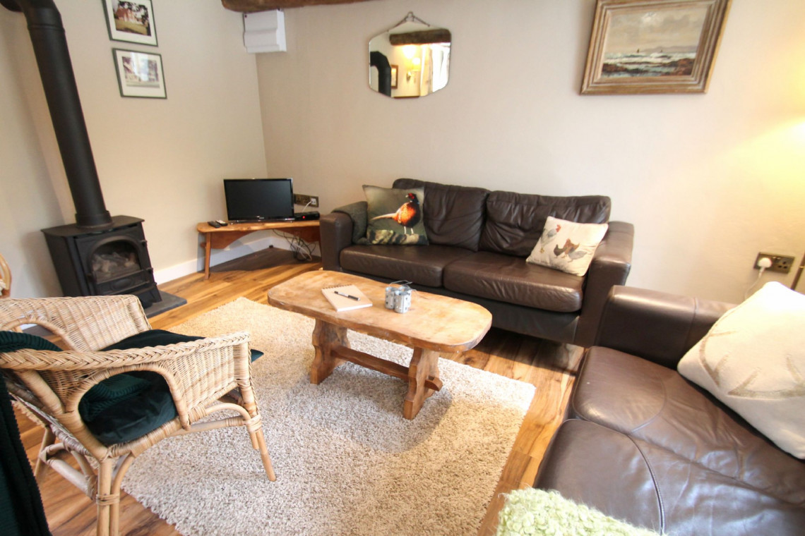 The entrance to The Piggery opens into a hallway, turn to the right into the sitting-dining room, with comfy sofas and a scrubbed pine table and chairs, there's a gas 'wood burning' stove, a smart TV and books and games to enjoy too. From the hallway, a few steps lead into the kitchen which is fully fitted with a dishwasher, washing machine, fan assisted oven, ceramic hob and microwave. It is roomy enough for a window seat and a chair to sit and chat while someone else does the cooking! A few more steps lead to the lower-level bedrooms, one twin bedroom and one double, which has a king-size bed. Adjacent to the bedrooms is a shower room comprising a walk-in shower, toilet and hand basin.