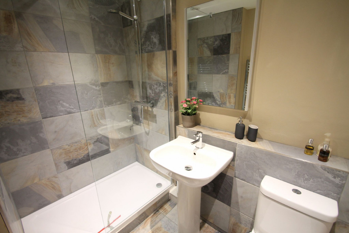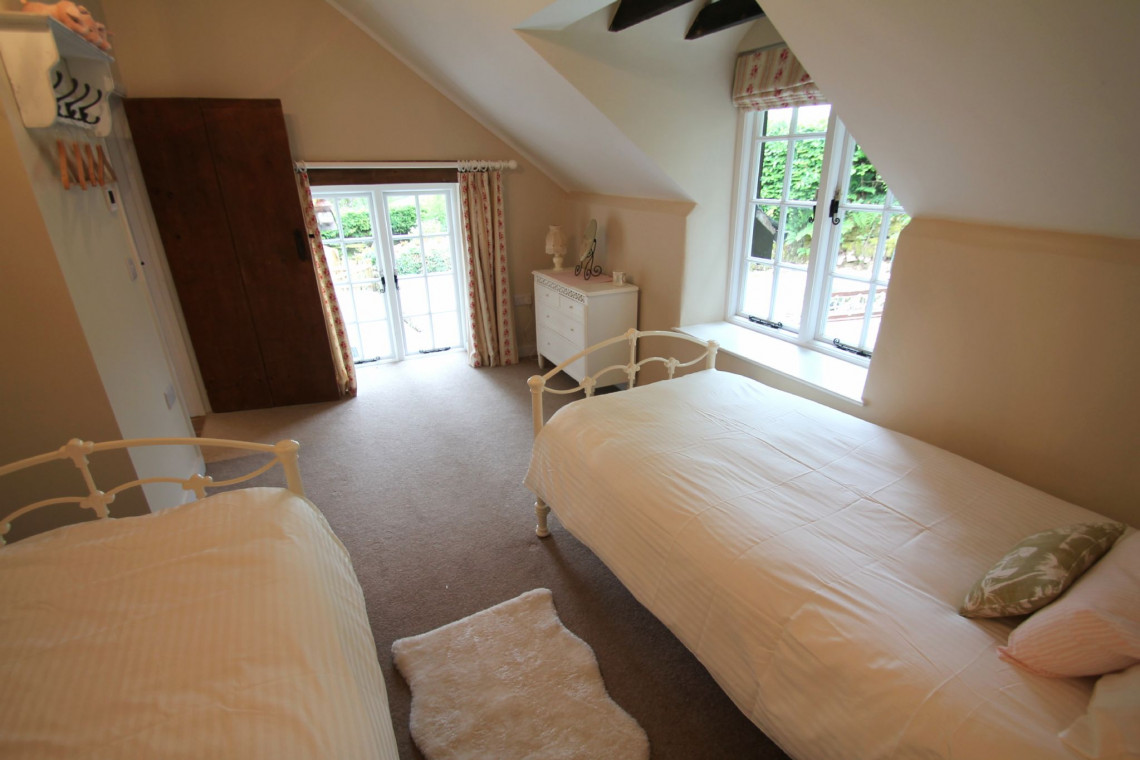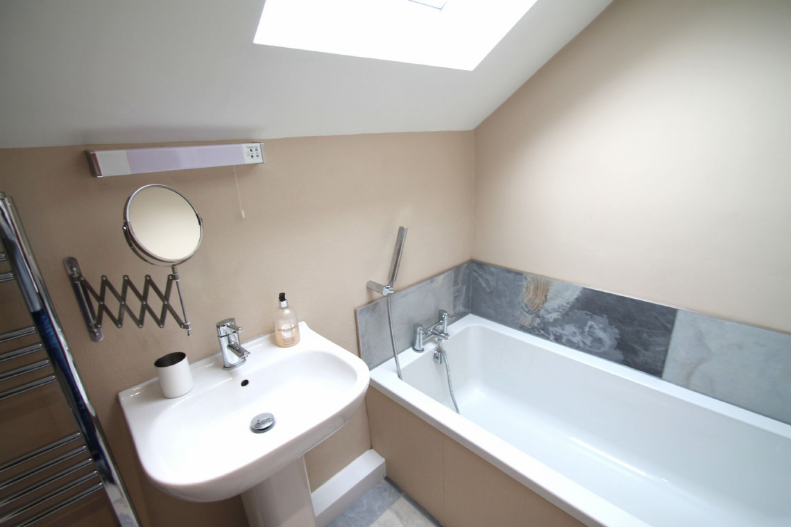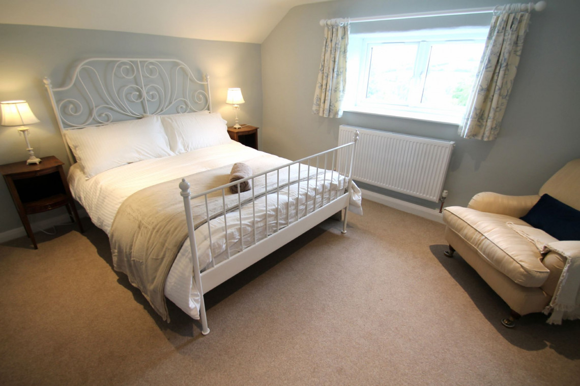 One the first floor there is the third bedroom (king-size double bed) and bathroom comprising a bath, which hand-held shower attachment, toilet and hand basin. The view from the upstairs bedroom is truly jaw-dropping – over fields, woodland and across the Exe Valley.