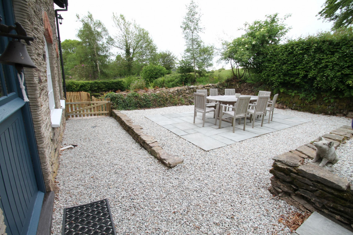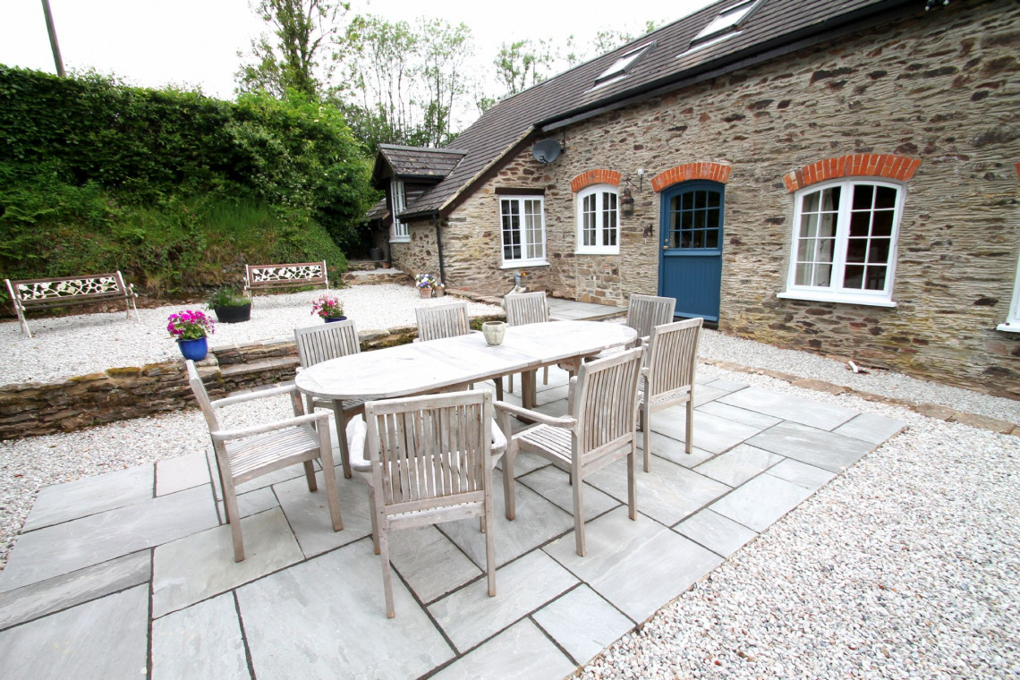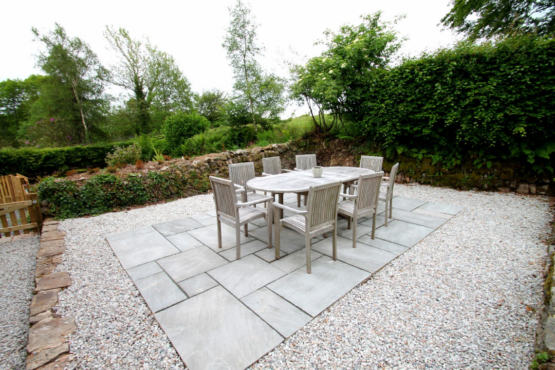 Directly outside the cottage is a fenced patio area with outside furniture and a barbecue. The patio overlooks the pond next to the cottage and is fenced, with views across the farm lawn and paddocks to the surrounding rolling hills of Exmoor. We do not guarantee that the patio area is entirely enclosed/dog-proof. There is also an outside tap, handy for washing off dogs or muddy boots after a walk. There's ample parking for 3 cars right beside the cottage.
