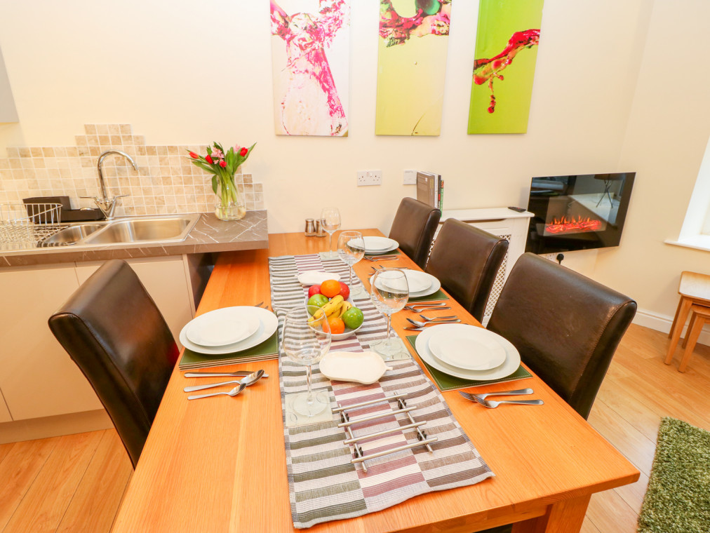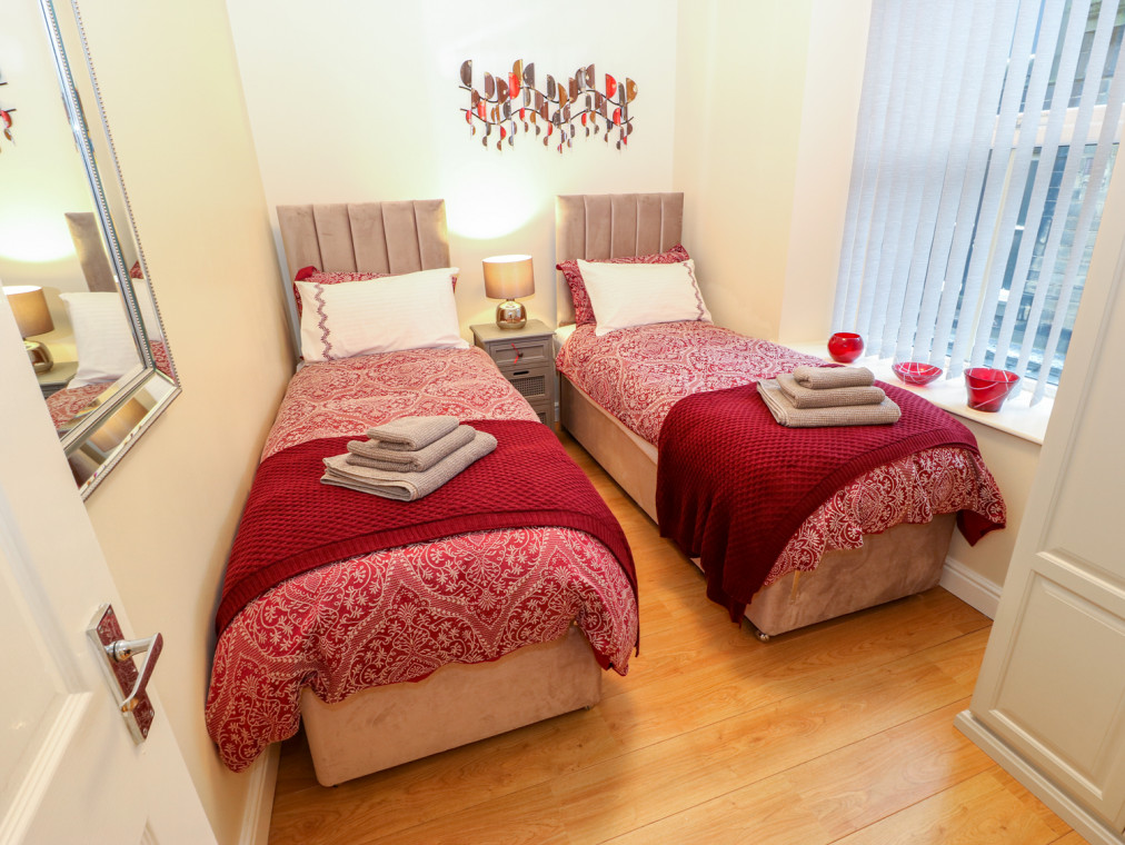 A first-floor contemporary apartment, situated within the centre of Todmorden. Situated off a cobbled street, this two-bedroom accommodation is ideal for a family looking to explore this area of Yorkshire. Moving through the property, you will find a well-presented open-plan living room, spacious enough for hosting the family together of an evening. Note: property can be booked with Refs. 998287, together they can sleep 8 people. First-floor apartment. Two bedrooms; 1 x king-size double (zip/link beds), 1 x double. Shower room with walk-in shower, basin and WC. Open-plan living room with sitting area, dining area and sitting area. Amenities for Rental Electric heating with electric fire Fridge/freezer, microwave, electric oven and hob, Smart TV and WiFi Bed linen and towels inc. in rent Fuel and power inc. in rent Free public parking nearby Two pets welcome Sorry, no smoking allowed Shop and pub within a 5-minute walk Note: This property is above an estate agents.