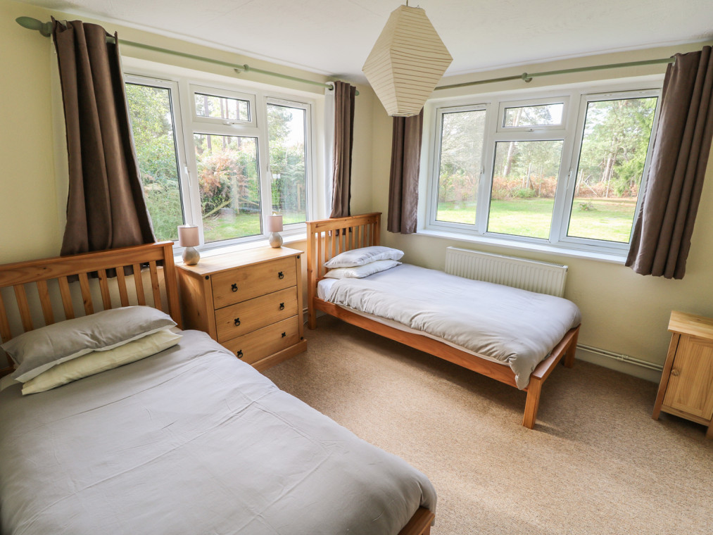Tucked away amongst whispering pine trees within Avon Heath Country Park, near the beautiful New Forest, is this charming detached bungalow, once a former ranger's residence. Furnished and equipped to a good standard, including a woodburner in the bright sitting room, this super bungalow has plenty of space around it, with forest views from all the rooms offering possible glimpses of the deer, birds and other wildlife who inhabit the park! This bungalow has a large private garden, and direct access to large areas of heather and heathland, an attractive well-managed habitat for many rare species of animal and plant life, including 5 miles of designated walking and cycle trails that meander across the park. Also, visitors to this bungalow are welcome to participate in the calendar of organised events, and to use the numerous park facilities, including a children’s play area, and a visitor centre with cafe. When you decide to venture out of the park, there's easy access to Dorset's beautiful countryside, stunning Poole Harbour and the scenic New Forest, as well as the beaches and all the attractions of the family-friendly resort of Bournemouth. A super holiday property in a wonderful woodland location to be enjoyed at any time of the year. All ground floor. Three bedrooms: 1 x king-size double with door to garden, 1 x twin, 1 x family room with 1 king-size double and 2 single stacker beds. Bathroom with bath, shower over, basin and WC. Kitchen. Sitting room with dining area and woodburner. Amenities for Rental Oil central heating with woodburner Electric oven, halogen hob, microwave, fridge, freezer, washing machine, TV with Freeview, DVD, CD/radio, selection of books and games Fuel, power and starter pack for woodburner inc. in rent Bed linen inc. in rent Please note that towels are not provided Off road parking for 3 cars Large enclosed grassed garden and patio with furniture Two well-behaved dogs welcome Sorry, no smoking Shop and pub 1 mile Note: The property is accessed via a half-mile of gravelled track Note: There is some residual traffic noise from the A338 which is about 250 yards through the trees Note: Intermittent mobile signal Note: Max 6 adults and 2 children Note: No stag/hen or similar. Note: This property does not have WiFI