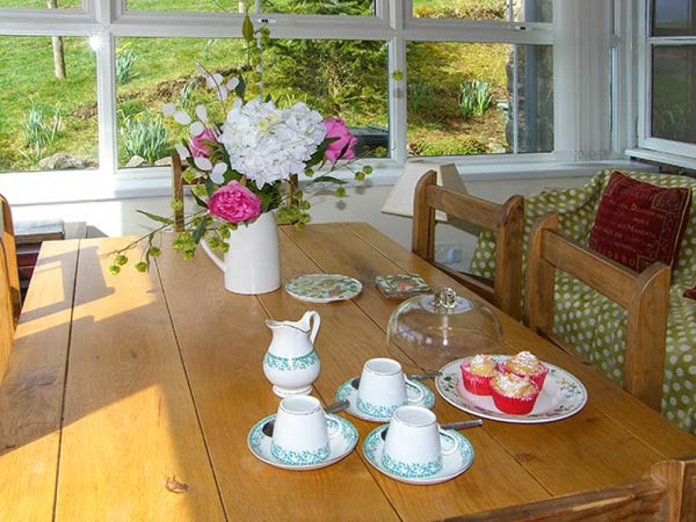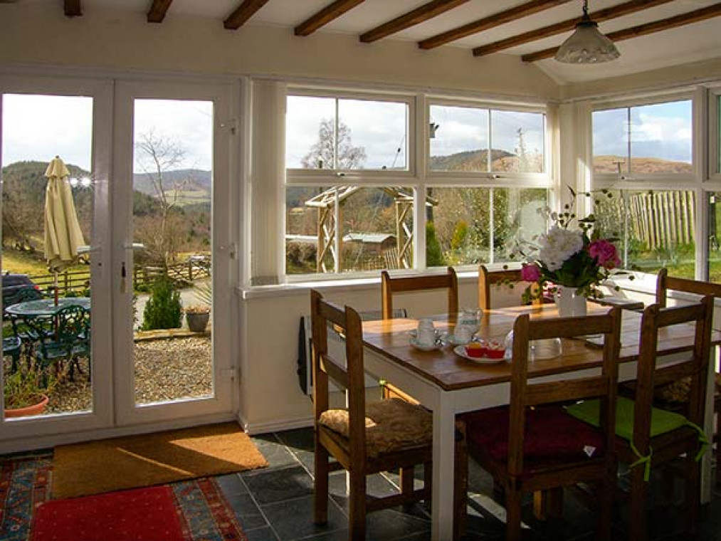 Lake Vyrnwy 1.25 miles. Escape completely to a charming, 18th century, stone-built cottage near Lake Vyrnwy, adjoining the owners' home on a sheep farm in their privately owned valley, part of the 6000 acre Dyfnant Forest and only 1.25 miles from beautiful Lake Vyrnwy. Offering cosy, well-equipped accommodation, this welcoming Lake Vyrnwy cottage includes a charming dining conservatory from where you can enjoy stunning views over the Vyrnwy and Conwy valleys, a sitting room with an open fire in an inglenook fireplace and three comfy bedrooms, including one on the ground floor. There are wonderful walks, bike trails and horse riding throughout the enormous Dyfnant Forest, while the scenery, walks and birdwatching all around Lake Vyrnwy are truly magnificent. From this lovely location discover all that Mid Wales, Snowdonia and Shropshire have to offer, before returning to The Secret Hideaway, the perfect place for peace and tranquillity. Three bedrooms: 1 x king-size double, 1 x single with additional pull-out bed, 1 x ground floor twin. Ground floor bathroom with bath, shower over, basin and WC. Fitted kitchen (limited headroom). Conservatory with dining area. Sitting room with open fire. Amenities for Rental Oil central heating with open fire Electric cooker, microwave, fridge, freezer, washing machine, TV with FreeSat, DVD, WiFi Fuel, power and starter pack for open fire inc. in rent Extra fuel can be purchased from the owner Bed linen and towels inc. in rent Travel cot, highchair and stairgate Off road parking for 4 cars Bike storage Front gravelled sitting area with garden furniture, BBQ and views over the Vyrnwy and Conwy valleys One well-behaved dog welcome Sorry, no smoking Shop 5 mins walk Renowned Lake Vyrnwy Hotel with bars, restaurants and beautiful lake views 1.5 miles Note: Limited headroom of about 5'10" in kitchen Note: This is a working sheep farm, dogs must be kept under control at all times.