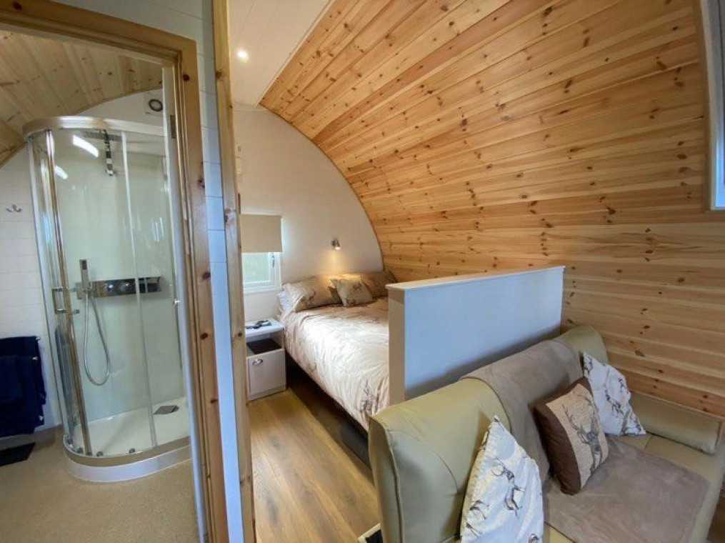 This stylish pod is situated in a large meadow, with ample space from its two neighbouring pods, Pheasant Roost and The Beehive.