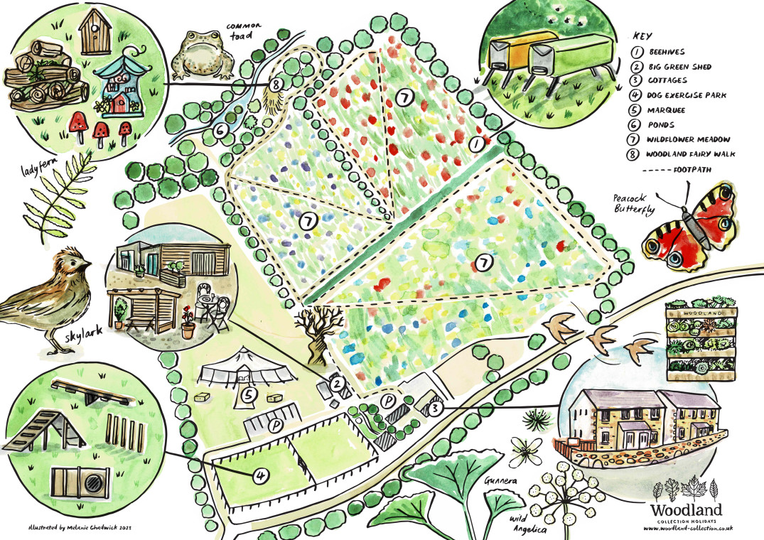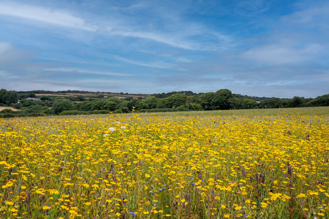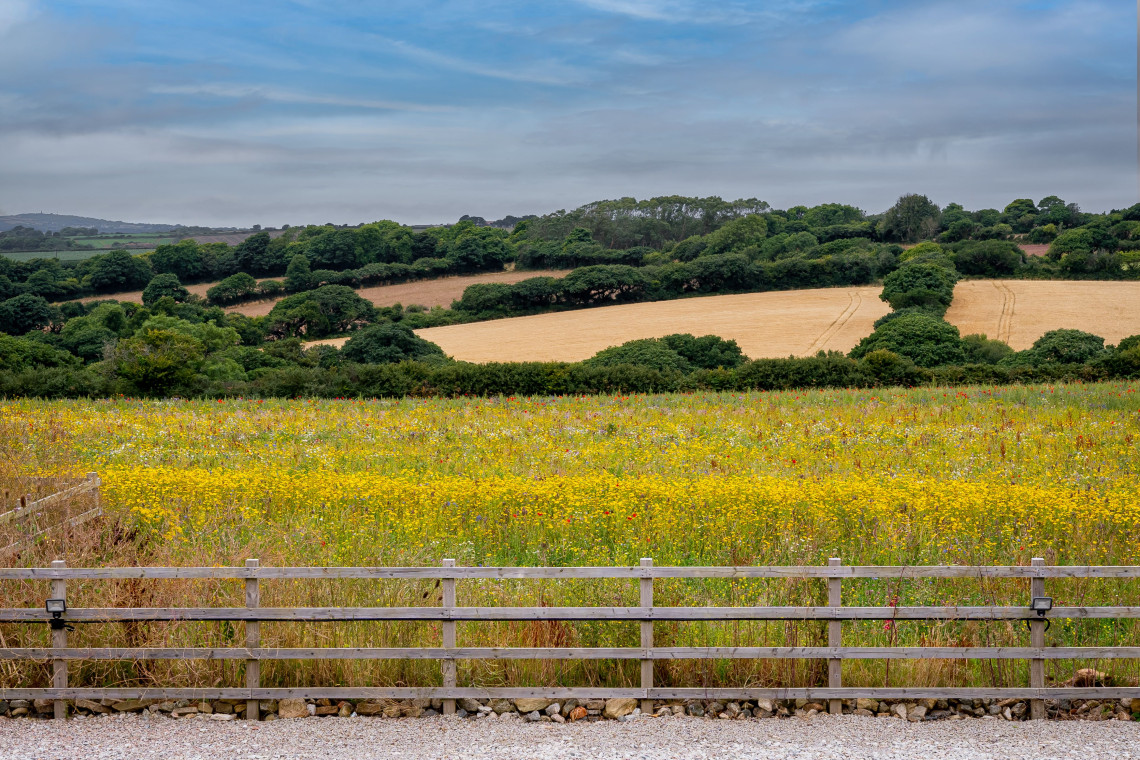 The Woodland Collection consists of 4 very dog friendly contemporary cottages, with 3 en-suite bedrooms (sleeps 6 ) taking up to 4 dogs per house. The cottages are set in 36 acres of beautiful wild-flower meadows and woodland, with a stream and ponds for Nature to thrive here too. We are lucky to have amazing far reaching views across the wild flower meadows towards St Ives in the distance and Godolphin National Trust estate in the other direction. We are only ten mins drive from LOTS of all-year-round dog friendly beaches, situated between Hayle, St Ives and St Michaels Mount.